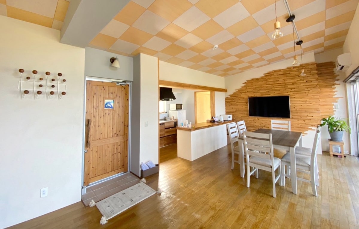 Близько 100 хвилин на машині від аеропорту Наха (під час користування швидкісною автомагістраллю) розташований у північній частині головного острова Окінави, майже половини півострова Мотобу, і розташований в селі Накіцзин, де розташований популярне туристичне місце, розташоване острів Курі. Nakijin Village оточений морем, багатим природою та високою прозорістю, а поблизу є багато природних пляжів. Місцевий прихований пляж 800 м! (Близько 10 хвилин пішки, 2 хвилини на машині), близько 10-20 хвилин на автомобілі на автомобілі Nakijin Castle Ruins (Всесвітня спадщина) Churaumi Aquarium, Bise Fukugi Lined Trees, острів Курі, розташовані в місці з чудовим доступом до основних туристичних місць на півночі Окінави. Бетонне бунгало (86 кв. м) 3LDK, усі з іспанською ліпною обробкою. Можна розмістити 3 ліжка, 1 односпальний футон, до 7 дорослих. Повністю обладнаний оптичним високошвидкісним Wi-Fi (5 ГГц) і робочим місцем, це ідеальне середовище для дистанційної роботи! Прямо перед будинком розташований парк, який також рекомендується для сімей з маленькими дітьми. У ясну ніч ви зможете насолоджуватися повним зоряним небом! FamilyMart знаходиться в 2 хвилинах їзди на машині, Seven-Eleven - в 4 хвилинах їзди на машині, продуктового супермаркету, Town Plaza Kanehide Nakijin Sakura Market, аптеки.