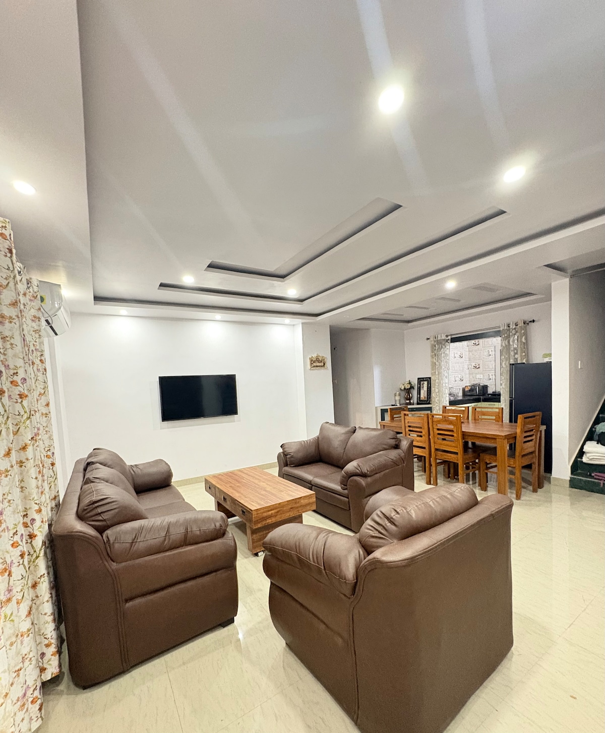 Discover a peaceful and spacious serviced apartment perfect for relaxation or work. This fully functional retreat features two TVs for entertainment, high-speed WiFi to stay connected, and an attached hall for added comfort. The airy layout provides ample space to unwind and enjoy quality “me time.” Whether you’re a solo traveler, a couple, or visiting for business, this apartment offers everything you need for a comfortable and serene stay.