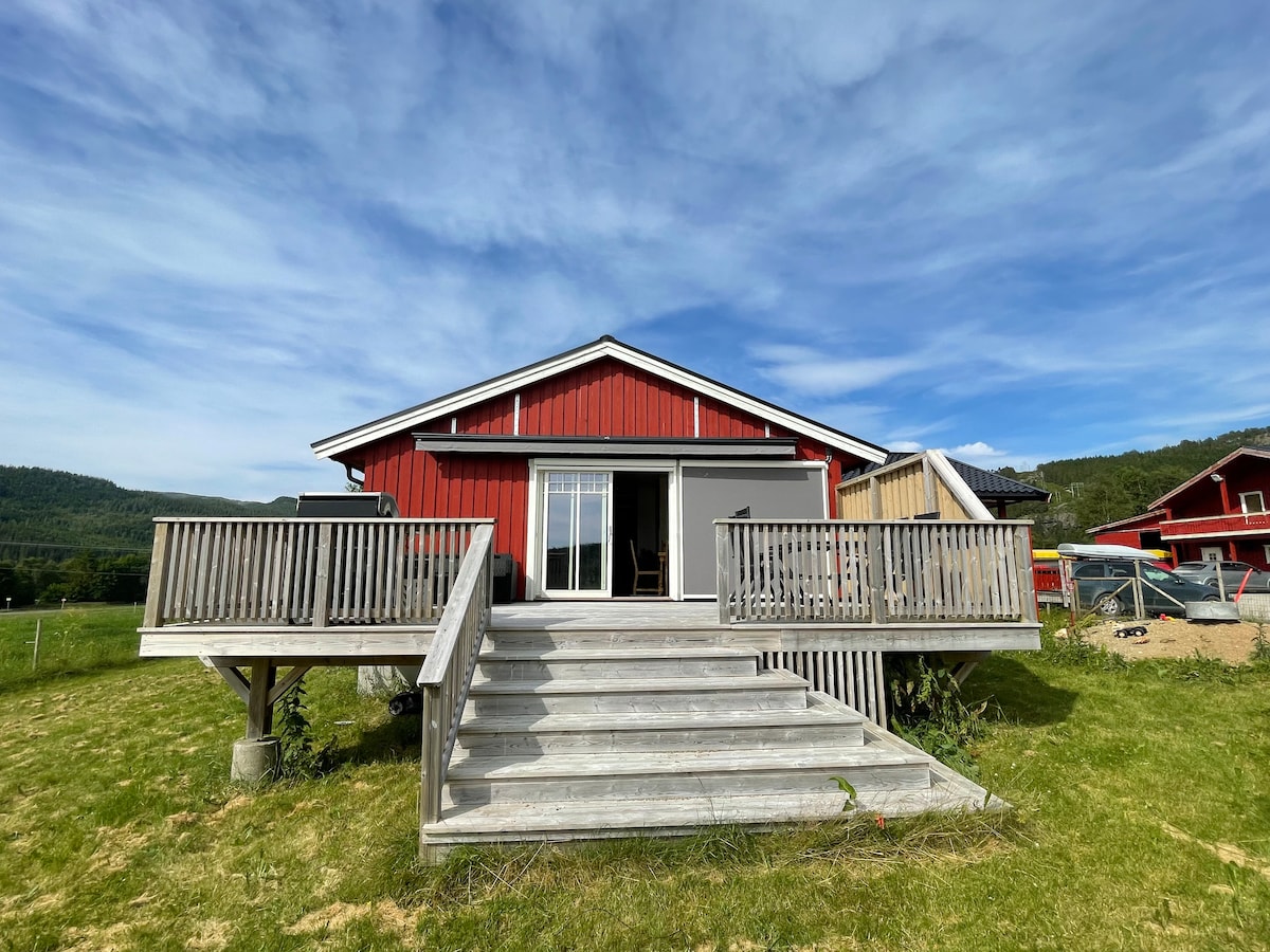 Ласкаво просимо до нашого гостьового будинку в Намсенфьордені Ми раді, що людям подобається проводити час на нашій фермі. Вони дають зворотний зв 'язок про те, що знаходять спокій і що тут є що запропонувати. У гостьовому будинку приємно просто бути або ви можете прогулятися лісом, горами, сільською дорогою або дослідити морську життя (човен/каное/каяк) і спробувати свою удачу на риболовлі. Гостьовий будинок невеликий і затишний. Підходить для тих, хто подорожує один, а також для сім 'ї/групи, див. фото для спальних місць. Будинок розташований на самоті. Можна з домашніми тваринами.