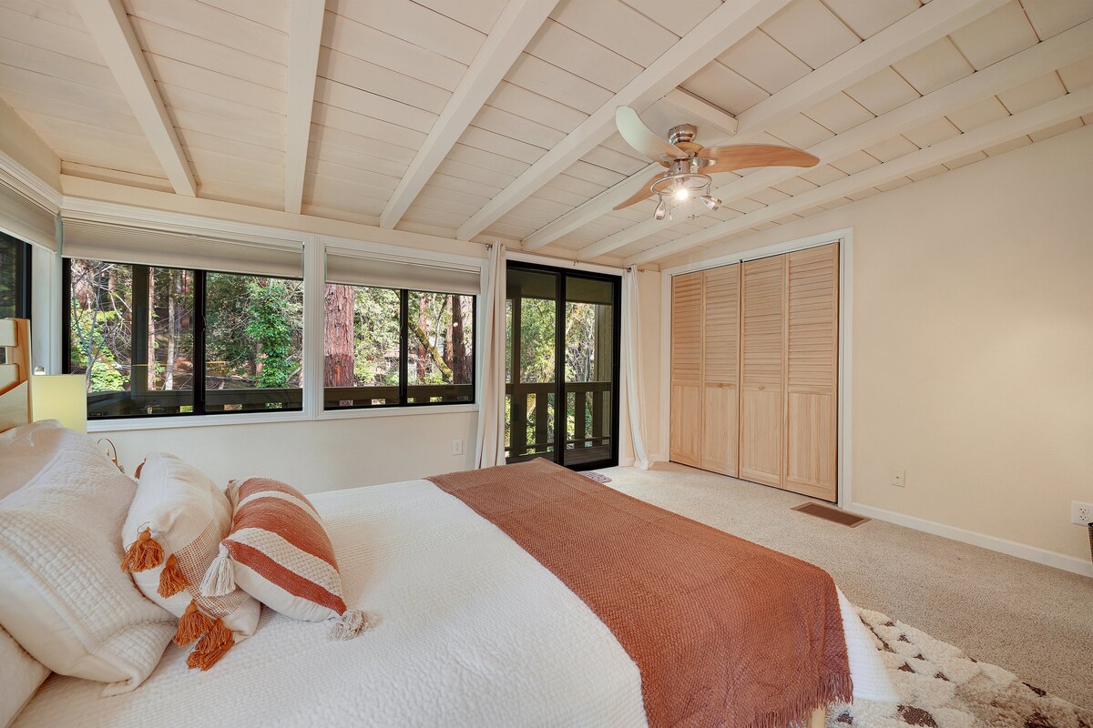 Спокійний захід Марін, ми з любов 'ю називаємо L' il Zuma. Сидить в величному гаю з червоного дерева в центрі долини Сан-Деронімо. Перейдіть пішохідний міст через ніжний сезонний струмок, щоб знайти чарівний будинок із індивідуальним сучасним інтер 'єром. Відкритий план поверху з мансардними вікнами, повноцінною спальнею та спальним лофтом, а також доступом до палуб, що виходить на вулицю. Розслабтеся у своєму чарівному приватному відпочинку. В декількох хвилинах ходьби від Ферфакса та зручного доступу до найкращих парків Західного Маріна, велосипедних, пішохідних стежок і пляжів. Життя - це добре!