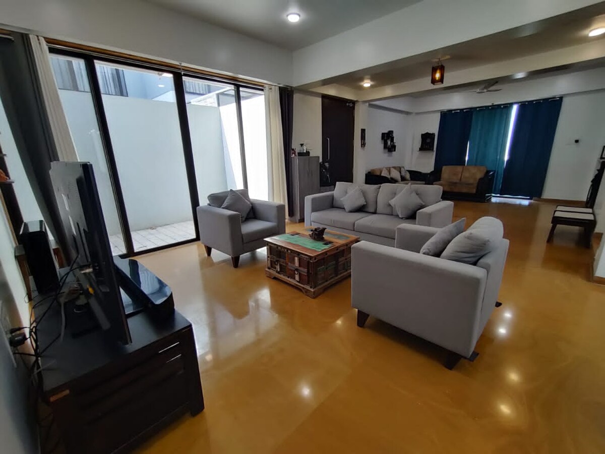 У помешканні приймають пан Нішант і його дружина, пані Мохіні. Уважно прочитайте всі інструкції перед бронюванням. 4 BHK з усіма спальнями з кондиціонером. 3 ванні кімнати для спалень 1, 2 та 4. 1 окремий для спальні 3. Ідеальне та доступне розкішне помешкання для зустрічі або зустрічей сім 'ї та друзів. Усі 4 спальні можуть вмістити максимум 12 осіб. Наприклад, 8 осіб на 4 ліжках і додатково на матрацах. Куточок для ігор і фізичних вправ, щоб ви були активними та в формі до кінця подорожі. Щасливого перебування !