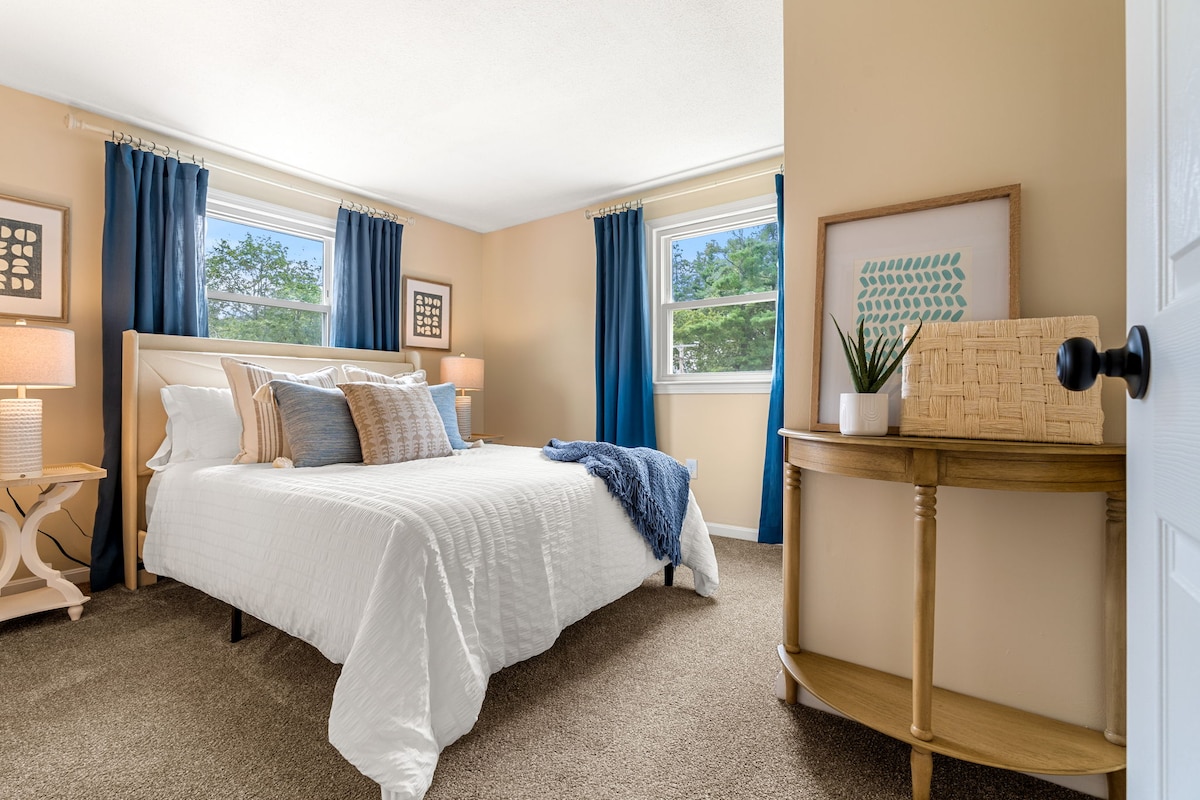 Приходьте і відпочиньте в нашому просторому на цокольному поверсі з однією спальнею, який є комфортним і яскравим. У ньому є окремий вхід із стоянкою поза вулицею. У люксі є велика вітальня, спальня з ліжком king-size та окрема ванна кімната . Розташування знаходиться в 20 хвилинах від регіонального аеропорту Манчестера/Бостона та в 10 хвилинах від торгових точок Merrimack Premium Outlets, а також найрізноманітніших ресторанів. Бостон, катання на лижах, пляж і найпопулярніші гори у світі знаходяться приблизно в годині їзди.