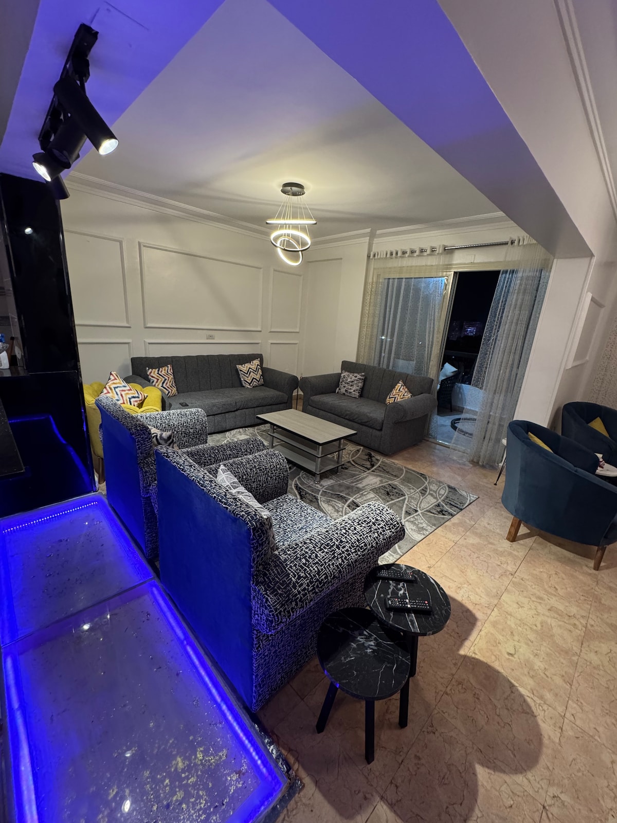 : ✨ Stylish 3-BR apartment in Cairo’s Golf area – steps from City Stars & top restaurants! Modern apartment with a master bedroom (king bed & TV), two twin bedrooms, elegant bathroom, cozy living room with smart TV, dining for 6, and fully equipped kitchen. Safe and lively neighborhood, perfect for families or groups.