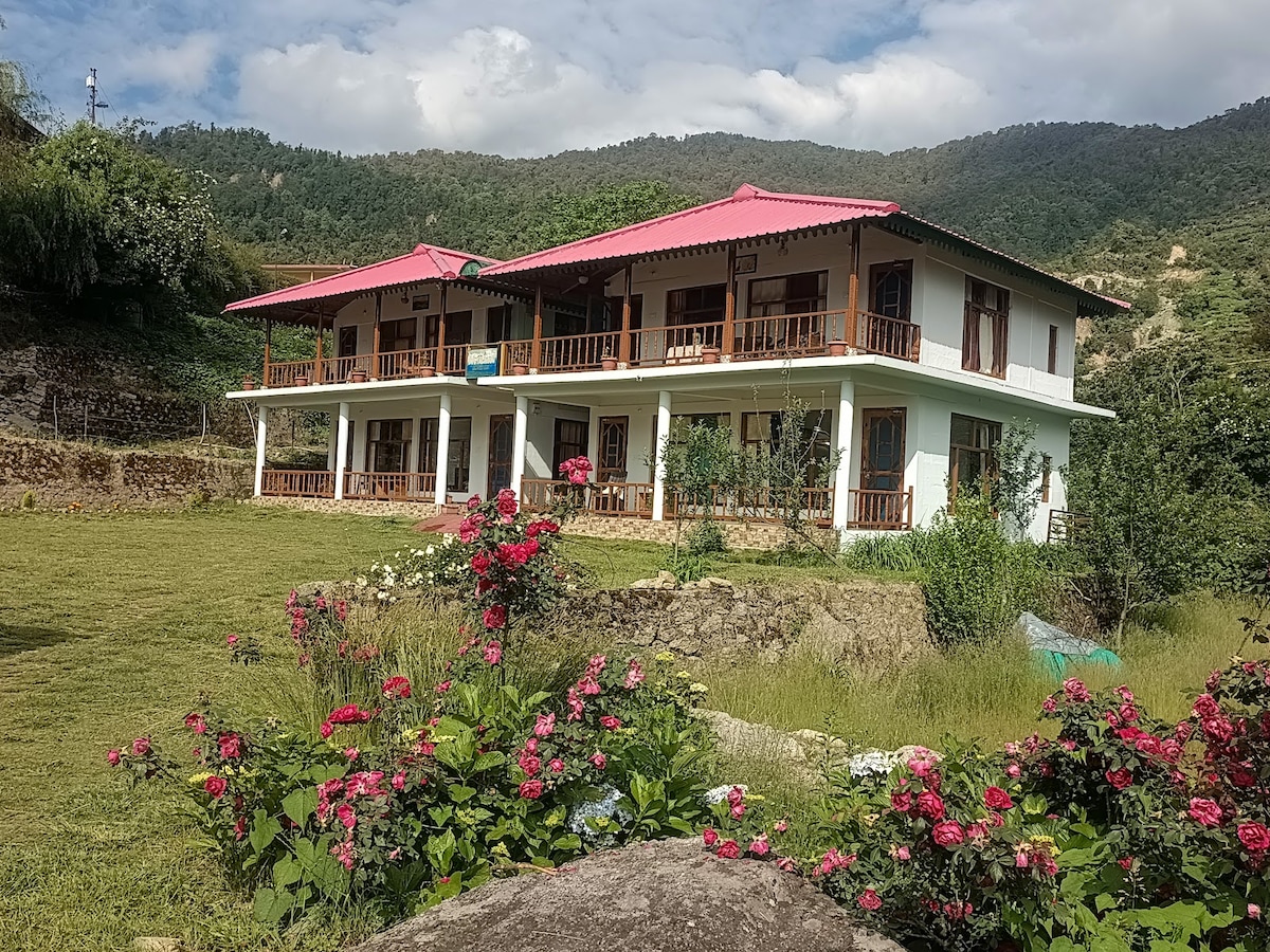 Pahadi Home, on the bank of Bhagirathi River, magnificent Valley n Forest View n Greater Himalayan View, Natural Farming, Apple Orchard. Perfect for those who wants to spend time in nature's abundance. Gangotri is just 22 km, Gartang Gali 11 km, Nelong Valley Entry point 11 km. Saat Taal and Jhanda Bugyal Trek from property itself. Approx 300 meters trek from parking to property, which takes just 1-2 minutes but please be informed. Pl do not book if do not want to walk even for approx 300 mts.