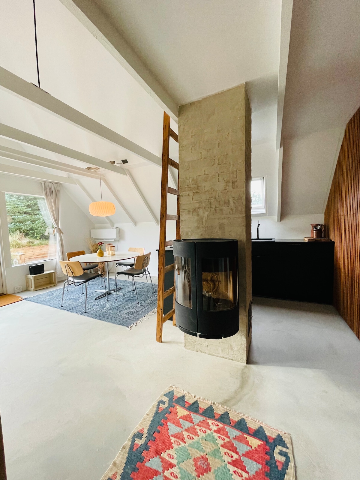 Oplev fred og ro i hjertet af Nationalpark Thy Tæt på Cold Hawaii, Klitmøller,- tæt på Vorupør ligger denne nyrenoveret ferielejlighed med plads til 2-4 personer. Lejligheden har egen privat indgang. Fra lejligheden er der udgang fra terrassedør til privat terrasse, med Nationalparkens fred og ro foran egen bålsted. Fra terrassen er der udsigt over mark og den gamle mølle som er lyst op om aftenen. For yderligere info omkring ophold med lille hund brug venligst kontakt info på billede galleri