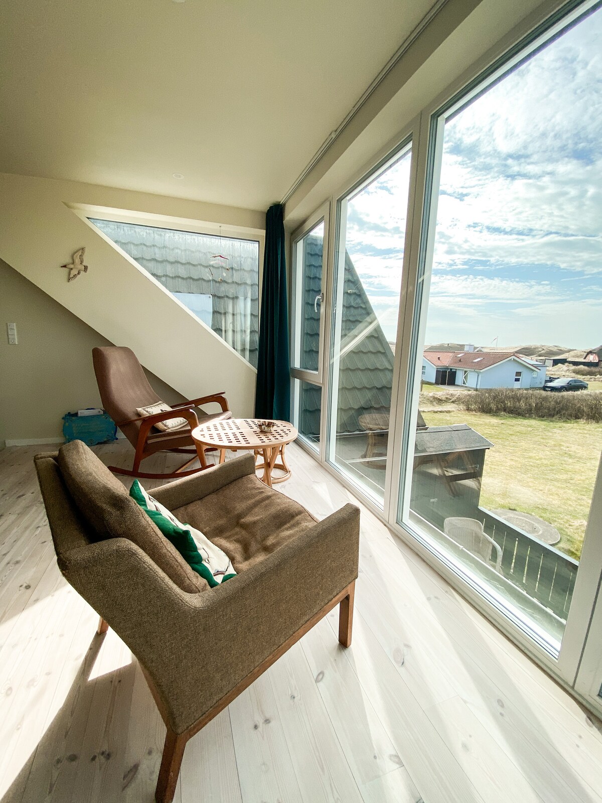 Dette skønne, stråtægte hus ligger helt ugeneret i læ bag klitten lige ud til Vesterhavet og har en vidunderlig udsigt over ådalen og dens rige dyreliv. Her er en helt særlig atmosfære og huset er skønt uanset om I vil hygge jer med familie og venner, kommer for at nyde roen og det vidunderlige landskab eller vil sidde koncentreret med noget arbejde. Der kan altid findes læ lige omkring huset, hvor solen er fra den står op, til aftenen falder på. I kan gå ned at bade på få minutter.
