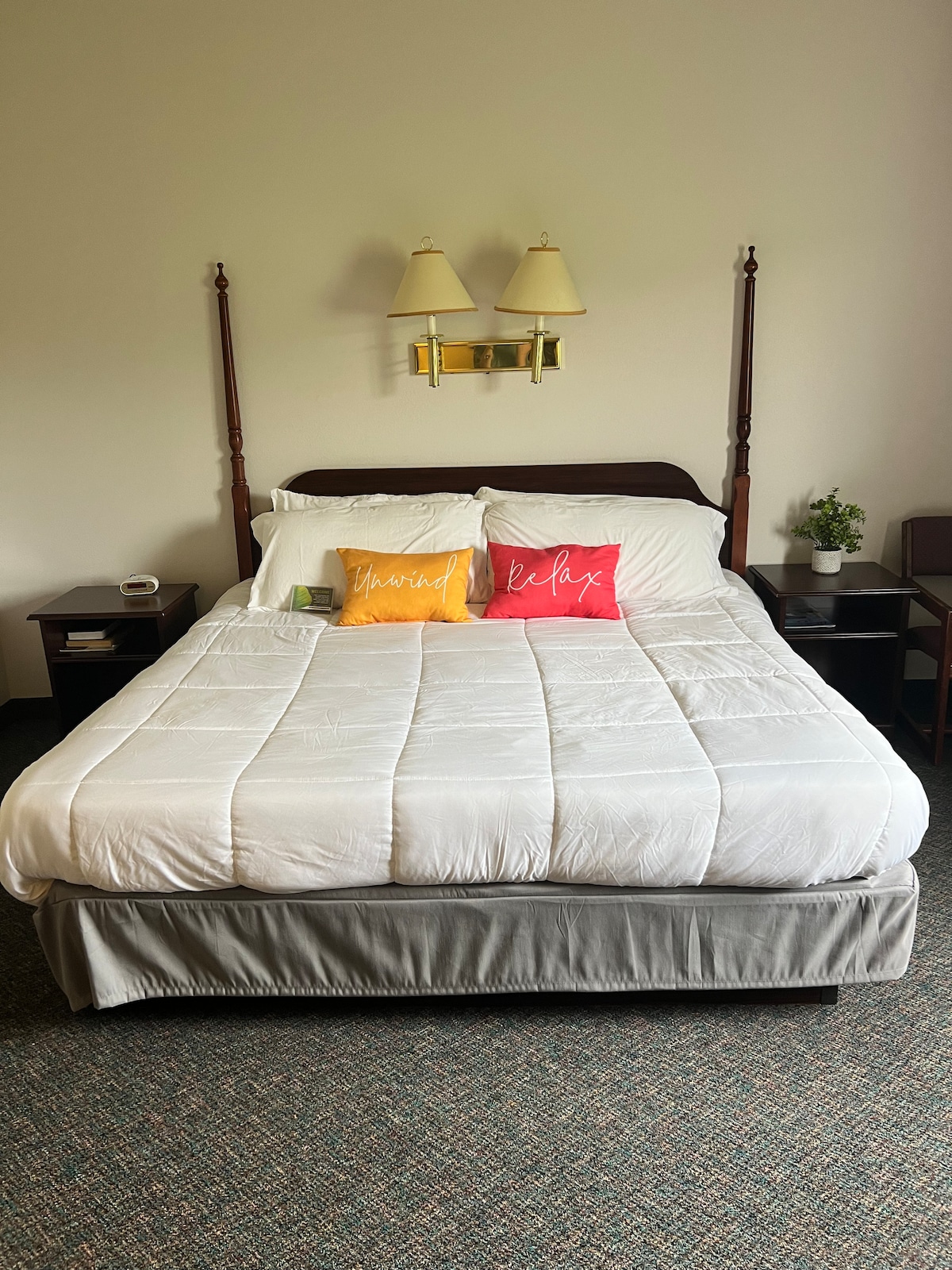 Ласкаво просимо до світу комфорту та веселощів у повністю відремонтованому бутиковому ретриті Лінкольна! Підніміть своє перебування та зануртеся в спокійне ліжко king-size з плюшевими подушками, залишайтеся на зв 'язку з просторим столом і безкоштовним Wi-Fi, а також насолоджуйтеся сучасними перевагами, такими як елегантна сучасна ванна кімната, кавоварка з одним обслуговуванням та мініатюрний вертикальний холодильник з морозильною камерою. Відпочинок і зручність під рукою, ваш ідеальний відпочинок готовий і чекає.
