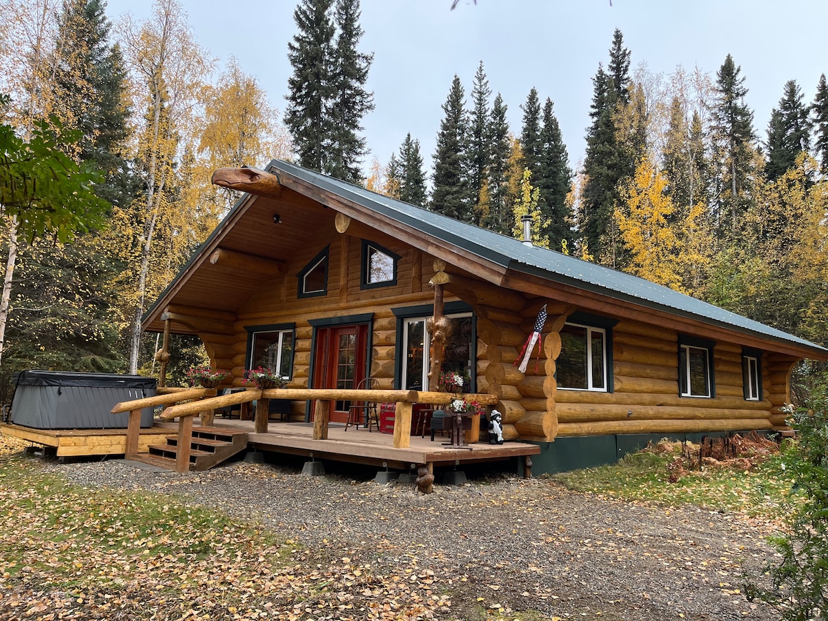Відійдіть від натовпу та насолоджуйтеся спокоєм дикої природи Аляски в цьому затишному зрубі. Цей красивий зруб розміром 12 х 20 розташований в лісі, всього в 17 милях на північ від Хілі та в 30 милях на північ від національного парку Деналі. Відпочиньте на терасі, яка виходить на прекрасні гори Аляски (видимі в ясний день) і спостерігайте за лосями та іншими дикими тваринами.