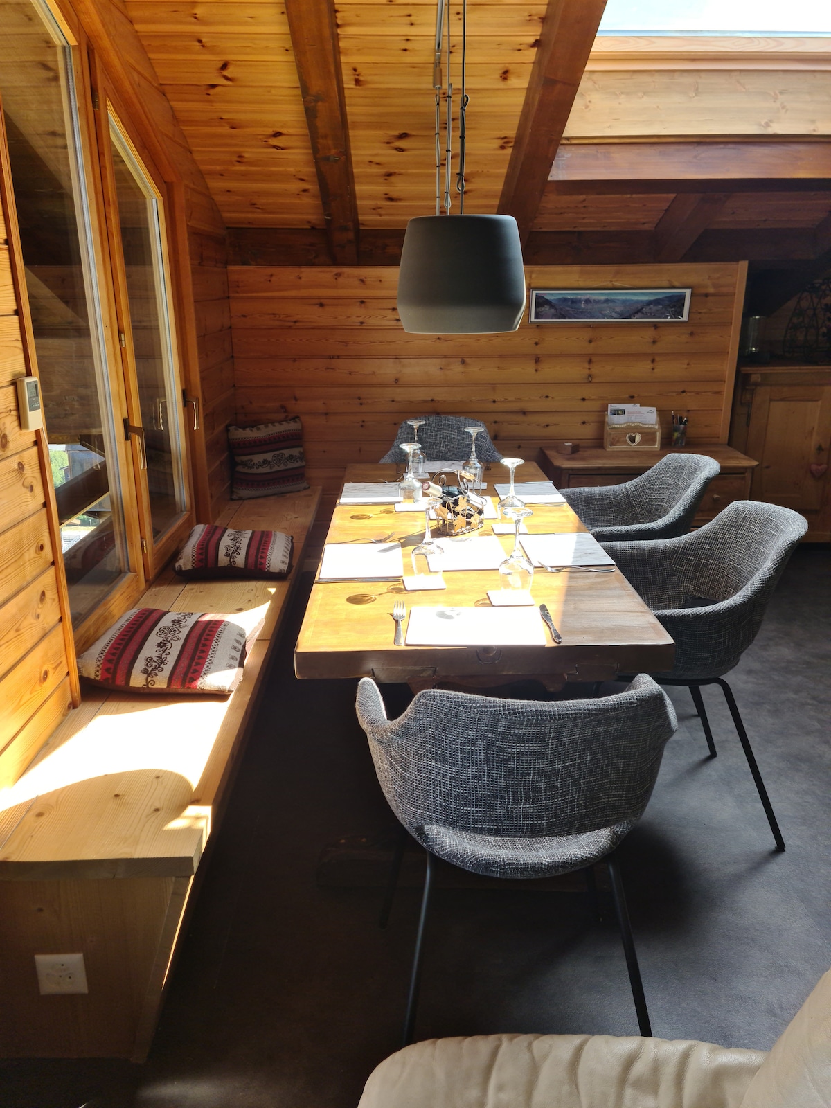 Дуже затишне маленьке шале (62 кв. м) на 2 осіб у верхній частині будиночка, дуже тихе місце. На передовій, що виходить на гори, повністю відкривається вид із захоплюючим видом на Швейцарські Альпи та їхні заходи сонця. Трохи далеко від бурхливого та шумного гірськолижного курорту, але до нього можна дістатися за хвилину на автомобілі або за 500 м пішки до безкоштовного лижного автобуса. Безкоштовна відкрита парковка. Ми всі вчителі лиж і можемо надавати уроки катання на лижах за привабливими цінами