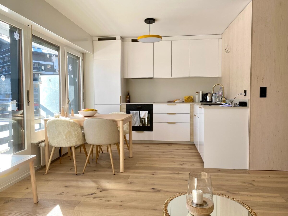 Насолоджуйтеся стильним і центральним помешканням. Квартира розташована в центрі курорту Haute Nendaz (Les 4 valleys), повністю відремонтована в 2025 році. Дуже яскравий з безперешкодним краєвидом і терасою, скандинавський стиль цієї оселі запрошує вас відпочити. Усі подорожі можна здійснювати пішки (магазини, ресторани, дозвілля, підйомники для лиж, здоров 'я знаходяться всього в декількох хвилинах ходьби). Оснащена 4 ліжками, двоспальним диваном-ліжком, достатньою кількістю місця для зберігання та дуже добре обладнаною кухнею.