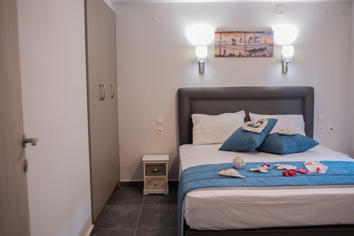 Красива, простора, світла квартира на даху з видом на море та гори. 3 хвилини від пляжу з блакитною зіркою та 5-зіркового готелю. Тут є гарні меблі, посуд, швидкий Wi-Fi, телевізійні канали з усього світу, система HIFI, кондиціонер, газове опалення, приватна парковка, три балкони, ліфт, домофон і велика гардеробна. Поруч із Gerovassiliou (винний будинок), аеропорт (15 хвилин), човен до центру міста влітку (45 хвилин). За невелику плату ми можемо забрати вас з аеропорту.