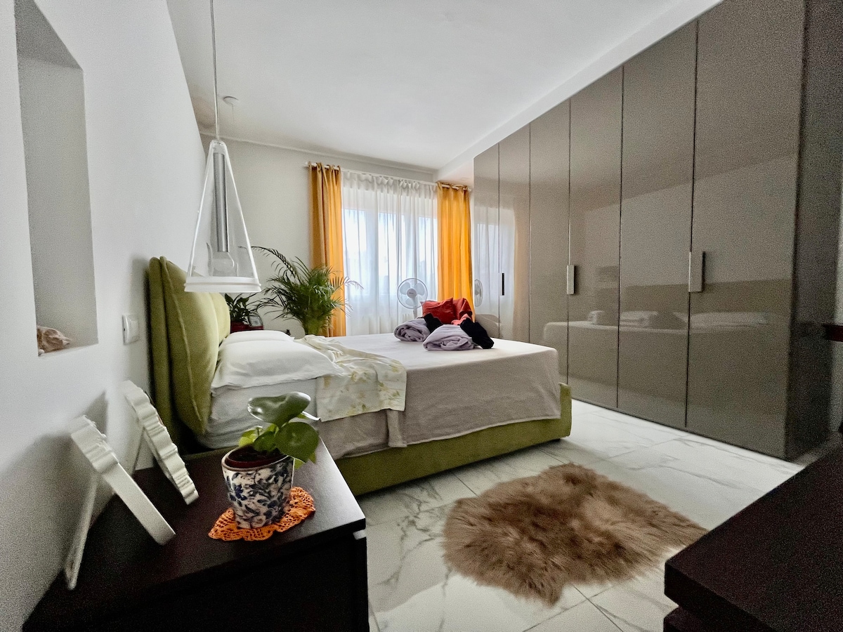 Вілла з окремим входом; на першому поверсі двомісна вітальня, кухня, велика ванна кімната з душем і простора веранда, з 'єднана з кухнею та садом, обладнаною та для ексклюзивного використання. На першому поверсі є двоспальна та двомісна кімната з балконом, а також ванна кімната з ванною. За запитом у вітальні є дитяче ліжечко та/або дитяче ліжко для двоспального ліжка та п 'яте ліжко. Парковка проста і безкоштовна на вулиці перед будинком.