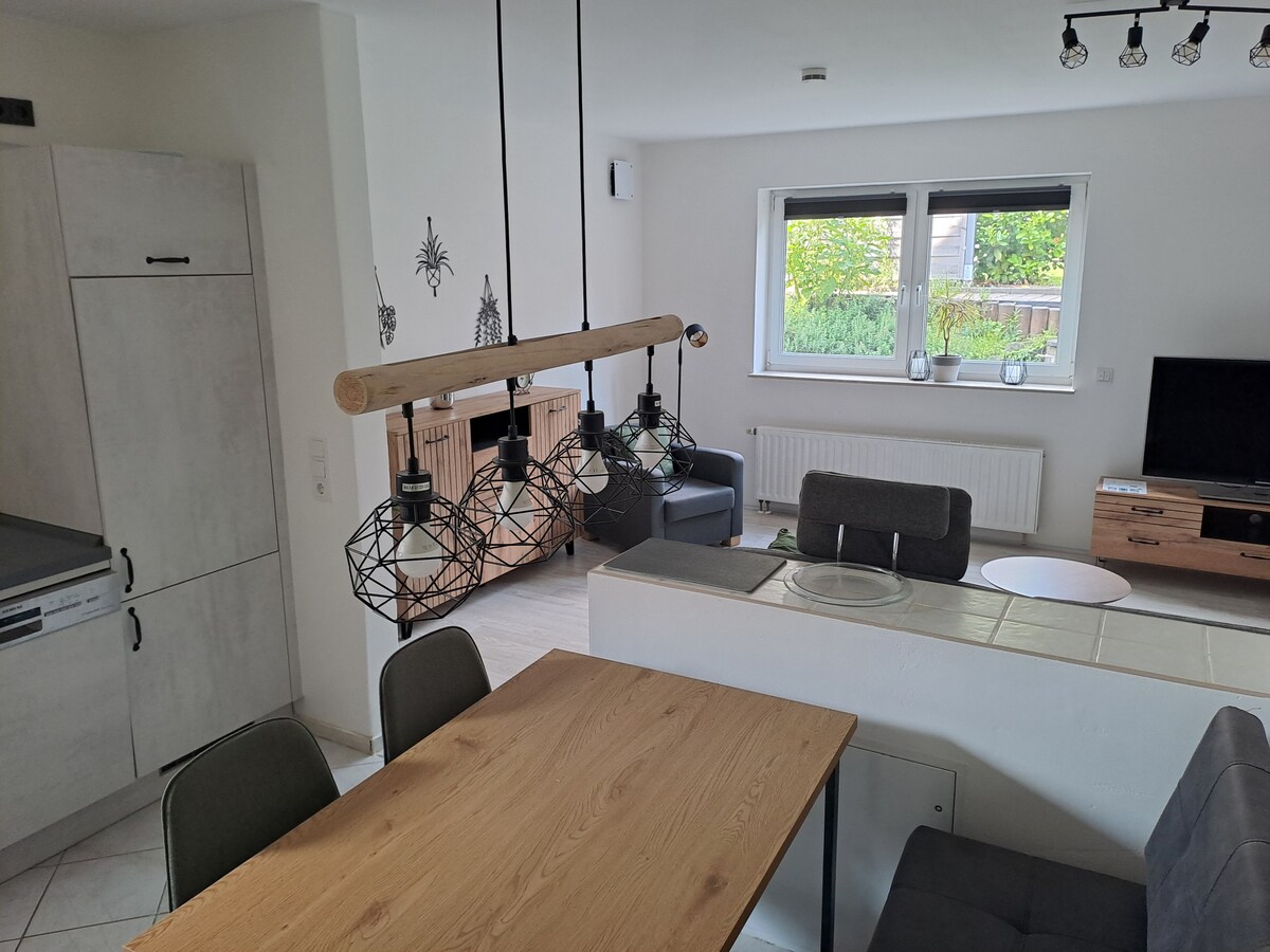 Kick back and relax in this calm, stylish space. There is a lot of room for up to 4 people, areas to relax, cook or work. Feel free to use the PlayStation or the electric sit/stand desk for home office activities. The loft is not far from Aschaffenburg, Frankfurt, Wertheim Village or Wuerzburg. All can be reached in max 50 minutes or less. Also, Spessart forest starts right behind the loft, a lot of walking and biking opportunities can be accessed from Waldaschaff and from the loft.