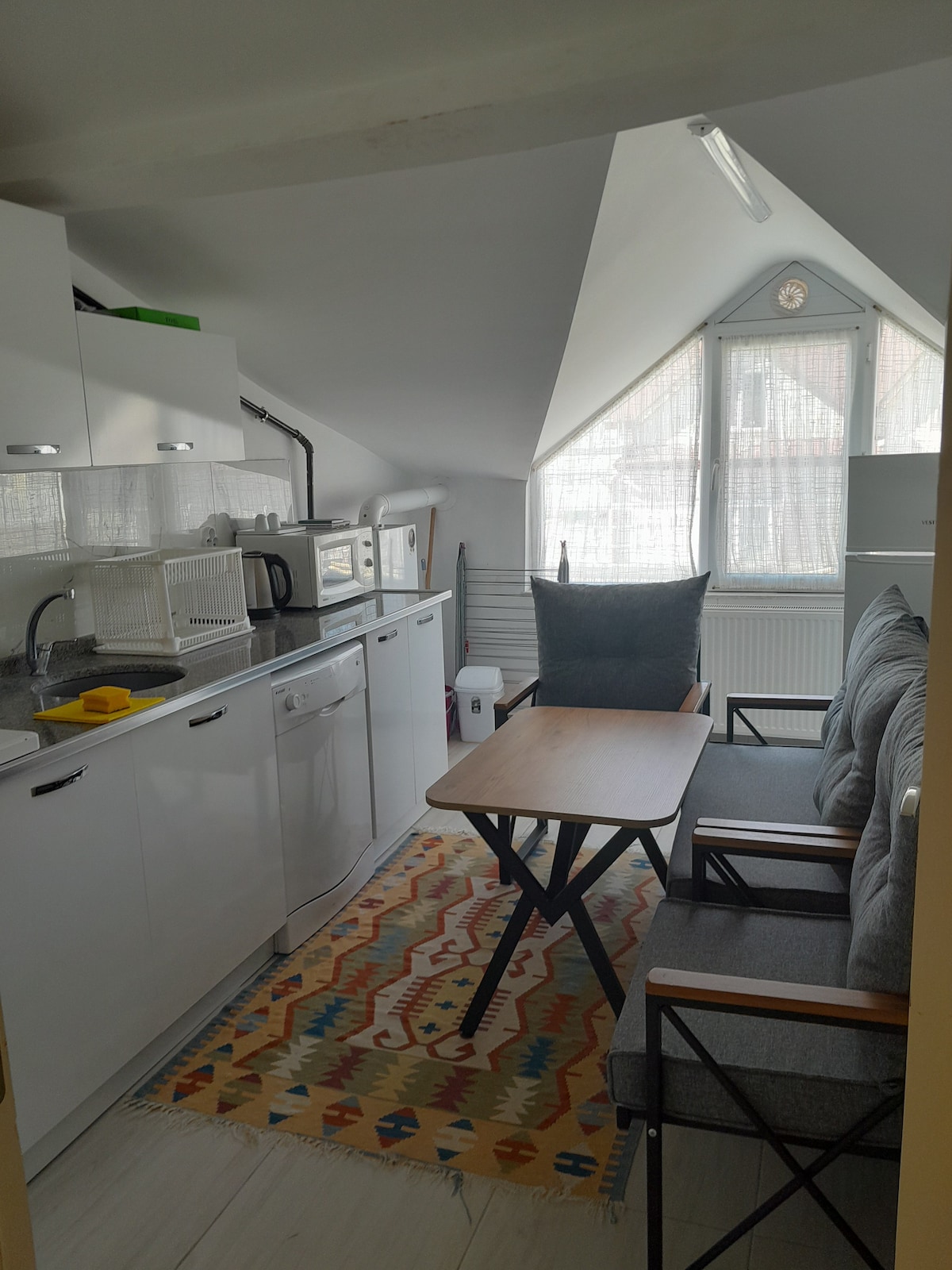 Натхненна любов 'ю до турецького стилю та простоти сучасного дизайну, наш верхній кам 'яна квартира світла та простора з балконом Джульєтти, спальня з ванною кімнатою розміру Queen size, простора вітальня з акцентами, а також розкладний диван і дуже зручне односпальне ліжко, ідеальне для відпочинку серед кілімських подушок. Нагорі повністю автономна кухня/їдальня, додатковий туалет і тераса, занедбана тераса. Ідеально підходить для вечері на відкритому повітрі та відпочинку в сільській атмосфері після насолоди Каппадокією.