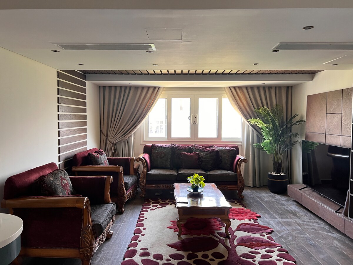 Відчуйте розкіш у цій квартирі з 3 спальнями в цілодобовому безпечному комплексі в Новому Каїрі – 25 хвилин від аеропорту. До ваших послуг головна спальня, смарт-телевізори, високошвидкісний Wi-Fi та преміальні меблі з розкішним комплектом для їдальні. Насолоджуйтеся спільними басейнами, зеленими насадженнями та прекрасними краєвидами. Поруч із найкращими торговими центрами, кінотеатрами, ресторанами та всім необхідним. Ідеально підходить для сімей або ділових поїздок. Забронюйте помешкання просто зараз