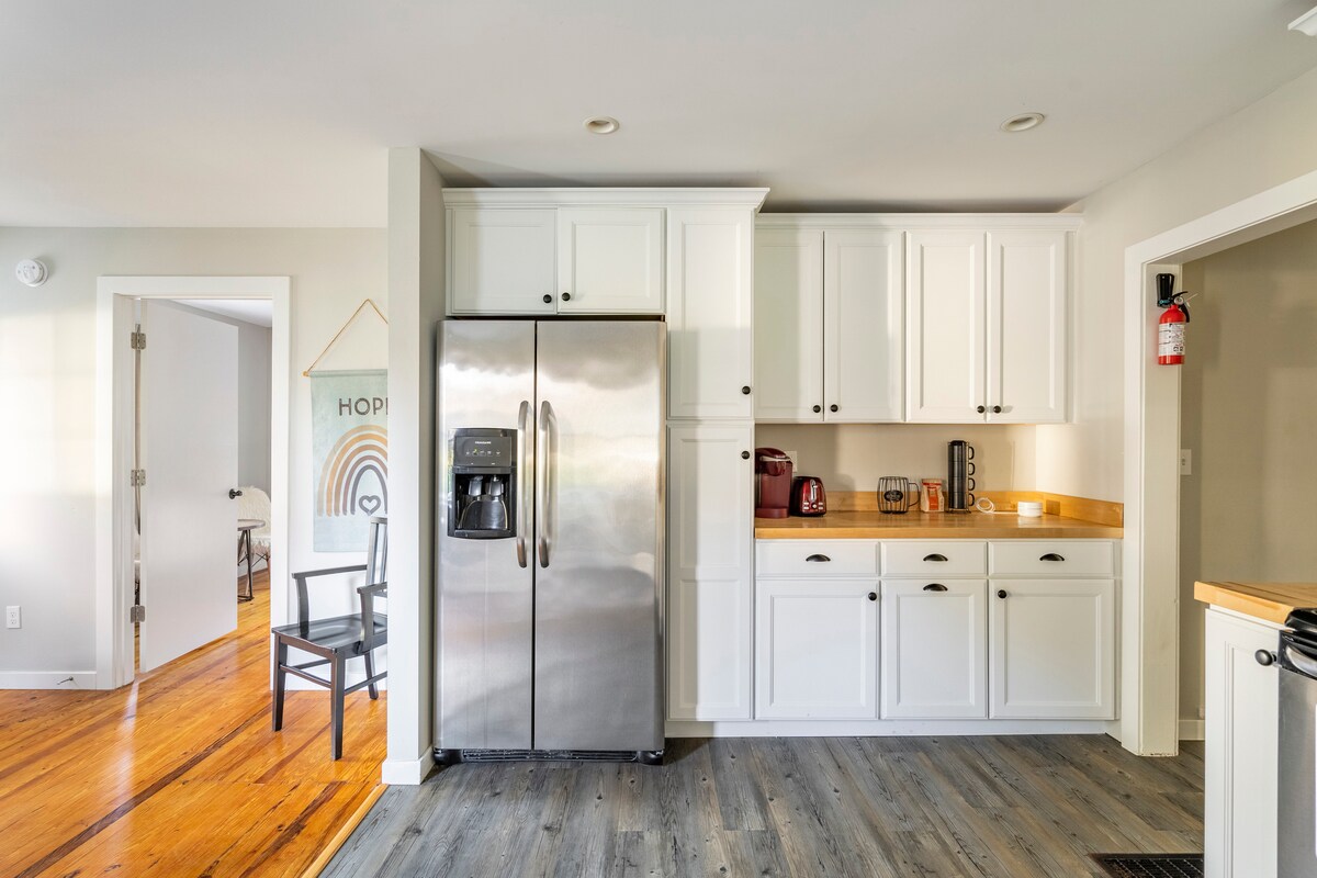 Бунгало з 4 спальнями поблизу історичного селища Колд-Спрінг-Віллидж та виноробні Кейп-Мей. З любов’ю відреставрований будинок з архітектурним шармом, оновленими ванними кімнатами та великою відкритою кухнею та вітальнею/їдальнею. Розташоване в межах 3 миль від пляжів Кейп-Мей. Пральна машина/сушильна машина, сонцезахисний майданчик, тераса, вітальня/офіс і багато паркувальних місць на території. Зворотній бік помешкання площею 1,3 акра забезпечує приватний доступ до велосипедної доріжки Cold Spring з душем на відкритому повітрі та каміном.