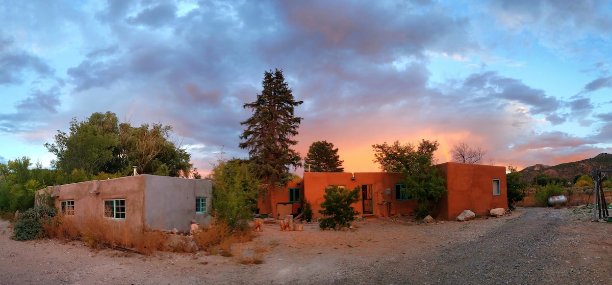 Наша Casita розташована на території кінного клубу площею 20 акрів з виходом до річки, вода знаходиться в 10 хвилинах ходьби від помешкання. Це приватне помешкання в центрі всього, що може запропонувати Абікіу. Відпочиньте в глибокій ванні та подивіться на зірки навколо чаші для багаття. До ваших послуг дров 'яна сауна на березі річки. Розслабтеся, приходьте порибалити. У Casita є ліжко розміру Queen size, холодильник, електричний чайник, тостер, газова плита та посуд для приготування простих страв. Ми знаходимося всього в годині їзди від гірськолижної долини Таос.