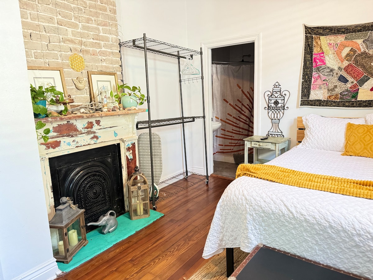 Ця приватна квартира-студія в Середмісті знаходиться в декількох хвилинах ходьби від найбільш культових районних ресторанів Нового Орлеана, водолазних ям та вуличної автомобільної лінії. Бездоганна, свіжо пофарбована та добре освітлена кімната з ліжком Queen, ванною кімнатою, міні-кухнею, кондиціонером та Wi-Fi. Міні-кухня містить холодильник, мікрохвильову піч, куріг і тостер, але без плити/духовки. Якщо ви прямуєте до центру міста або відвідуєте Середмістя, ця квартира - тихе, комфортне місце для підзарядки. Зручні для Jazz Fest, VooDoo тощо.