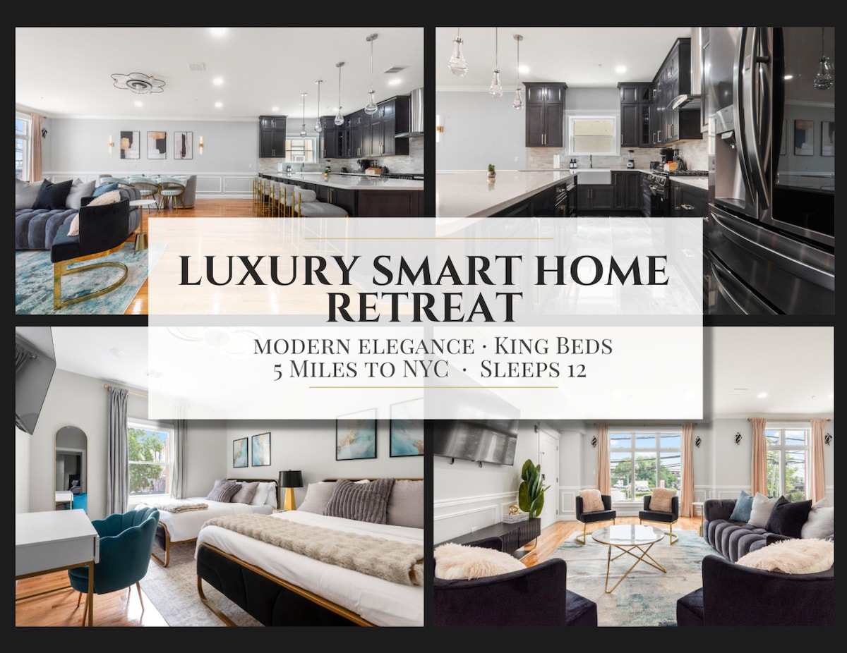 Відчуйте розкіш у цьому просторому помешканні з 4 спальнями та 3 ванними кімнатами в Джерсі-Сіті, недалеко від Мангеттена. – Розумні функції - 2 ліжка King size + 4 ліжка Queen size з готельною білизною - 4 телевізори Smart TV з повним доступом до потокових сервісів - Кухня, обладнана для шеф-кухаря, з холодильником для вина - Швидкий Wi-Fi для роботи з дому - Пральна машина/сушильна машина в помешканні та самостійна реєстрація прибуття без ключа - Ідеальне розташування поруч із парками, кафе та магазинами