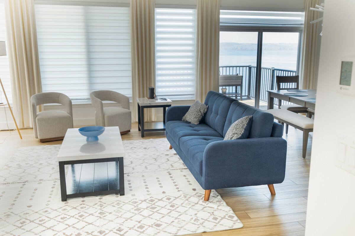 Відпочиньте в апартаментах капітана на набережній з додатковими зручностями, зокрема відкритою терасою, щоб насолоджуватися захоплюючим видом, три спальні та ванні кімнати, а також посудомийна машина, щоб полегшити прибирання після приготування їжі на повністю обладнаній кухні. У люксі є 65-дюймовий телевізор високої чіткості з 4000 фільмів і телевізійних шоу, а також настільні ігри, які розважатимуть вас під час перебування. Ви також можете прогулятися по пляжу безпосередньо на вулиці або піти по одній з численних місцевих стежок. Відкрийте для себе природу в The Homestead.