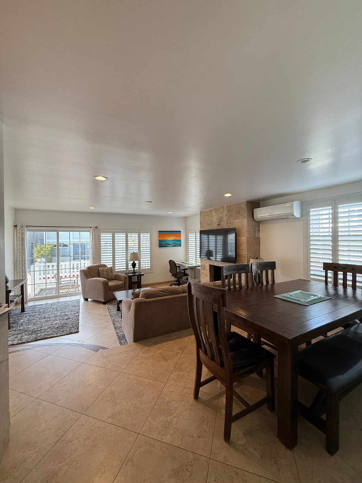 Location, Location, Location. Everybody benefits from this location. Whether you want to shop, walk, exercise, surf, dine or just hang out, everybody is happy. Updated and tastefully furnished 2 bed 1 bath unit with AC , EV charger, one garage spot.This is the lower unit of a duplex. Towels, linens, beach chairs ,beach towels , umbrellas, beach toys, boogie boards and coolers available for your use. Four bicycles provided with baskets and locks. Just bring your bathing suit! Wifi and AC.