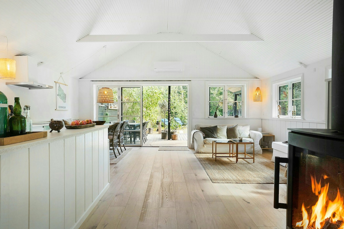 Відкиньтеся назад і розслабтеся в цьому тихому та новозбудованому стильному дерев'яному котеджі 2020 року, розташованому на природній ділянці за 500 метрів від найкращого пляжу Борнхольму - Дуеодде. У літньому будиночку також є затишний флігель на 3 спальних місця, байдарка та обладнання для дітей. Можливість здійснення покупок лише за 5 кілометрів від Сногебека, затишного рибальського містечка з ресторанами, портом і невеликим шопінгом. Культурні заходи в околицях – гарматна позиція, маяк і піщані банки – приїжджайте і відкрийте для себе прекрасний Борнхольм