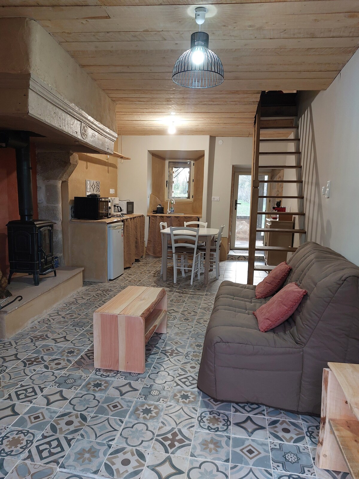 Затишний котедж, що прилягає до нашого будинку, але з окремим входом і невеликою приватною терасою . Доступ до нашої лісової та спільної території, де є сад, овочевий сад, курятник(курей і півень) , ставок тощо: притулок для біорізноманіття. Відремонтований з екологічно чистих матеріалів, він прагне до екологічного туризму: дров 'яної печі, сухого унітаза, компосту. Ідеально підходить для відпочинку, він запрошує вас від 'єднатися і повернутися до простоти в гармонії з природою.