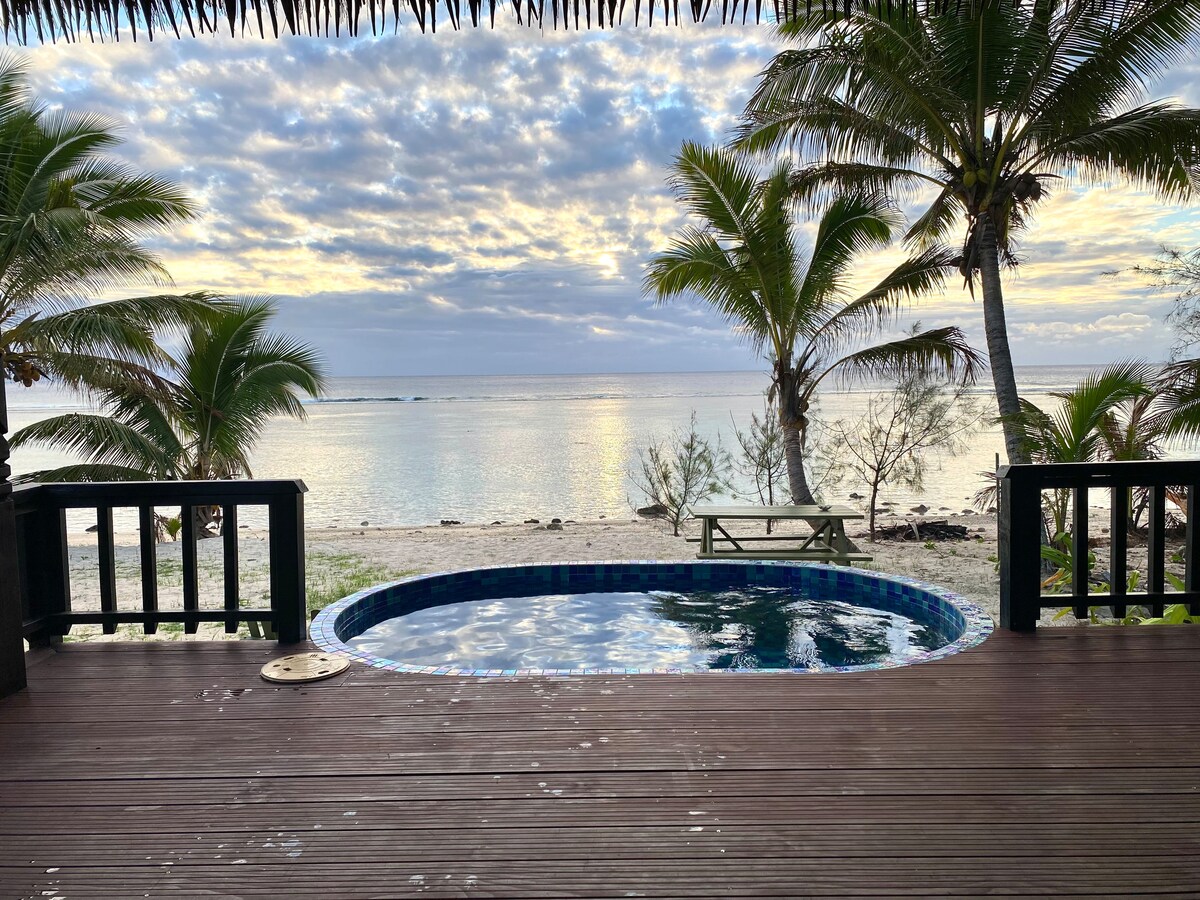 Наша розкішна вілла розташована прямо на пляжі, через дорогу від садів і кафе Maire Nui, яке розташоване в районі Тітікавека. Відпочиньте в раю з найкрасивішою бірюзовою лагуною всього в декількох кроках від вашого балкона. Насолоджуйтеся нашим приватним кварталом із гальковою ванною, спостерігаючи за зірками. Наша вілла з екраном від комах, має кондиціонер і вентилятор із великою терасою біля пляжу, кухонними зручностями та барбекю, каяком, спорядженням для сноркелінгу під час вашого перебування та безкоштовним необмеженим Wi-Fi.