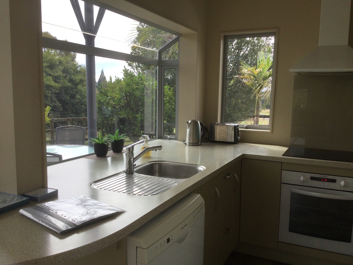 Kowhai House розташований у унікальному місці на вершині скелі, звідки відкривається неперевершений вид на місцеву природу з трьох боків і сільськогосподарські угіддя з іншого. Будучи новою будівлею, ми зосередилися на тому, щоб забезпечити елегантний, стильний відпочинок з усіма недоліками модифікацій, якщо нашим гостям потрібно наздогнати насичений світ на вулиці. Обов 'язково перегляньте наше друге оголошення Tui Lodge and Cabin, яке нещодавно було опубліковано, щоб доповнити Kowhai House. Ідеально підходить для пар або більших груп (дві пари, що подорожують разом, або сім’я)