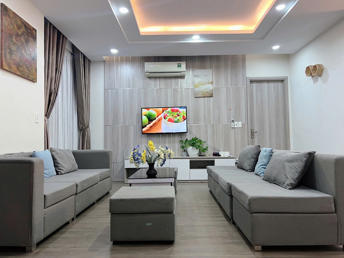 Ласкаво просимо до квартири з 3 спальнями в мережі приморських апартаментів NATA — Nha Trang Tourist Apartment Наша квартира має площу 90 кв. м, 3 спальні, простору вітальню — кухню, 2 туалети, вид на море та вулицю Дизайн відкритого простору підходить для груп друзів або сімей від 3 до 8 осіб. Зручне розташування біля моря, просто перейдіть вулицю до пляжу Хон Чонг. У цьому районі є все необхідне: ресторани, супермаркети, закусочні, спа-центри... підходить для короткострокового та тривалого перебування