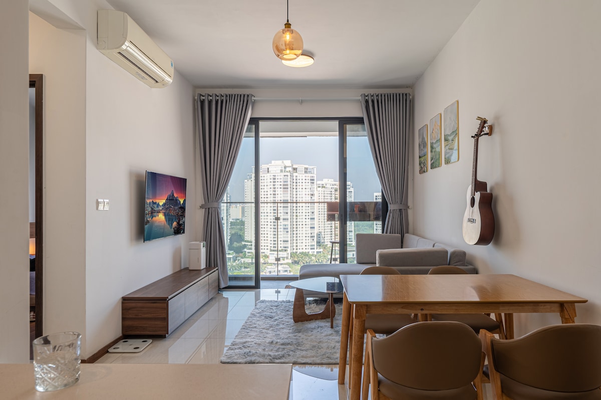 Please be advised that there is ongoing construction in the surrounding area. While the work does not affect access or the quality of the apartment, some daytime noise may be audible. You will feel relaxed in this calm and stylish space. There are many convenience stores, restaurants, and coffee shops nearby, along with access to infinity pool and gym. 15 mins to reach Thao Dien This 1-BR condo has beautiful city view 1 bedroom 1 bathroom Kitchen and living room Smart TV with Netflix function