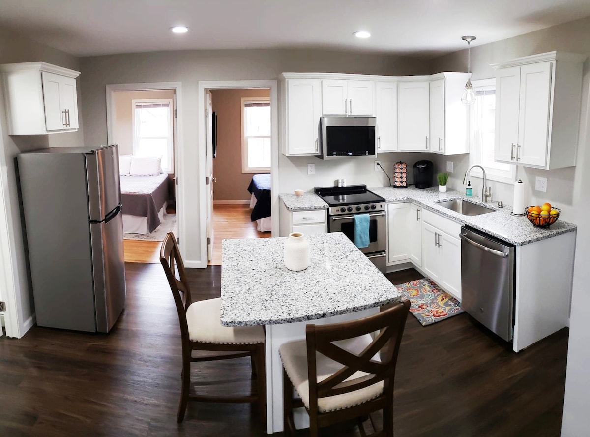 Менше 1 милі від водоспаду. Абсолютно ідеально підходить для 2 пар або невеликої сім 'ї/групи друзів. Насолоджуйтеся 2 окремими спальнями, кожна з яких має абсолютно новий матрац із пам 'яттю розміру «queen-size». Кожна спальня має власну ванну кімнату. - Великий телевізор із додатками (*Зверніть увагу, що для доступу до кожного додатка потрібно мати власні облікові дані для входу*) Поруч із пішохідними доріжками, пішохідними стежками на річці Ніагара тощо. Інші важливі речі Власник вимагає посвідчення особи для перевірки перед прибуттям