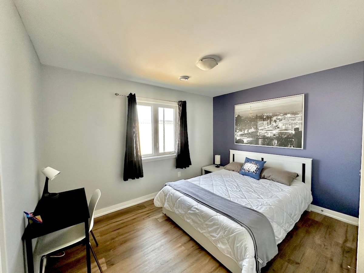 Просторе помешкання з 4 спальнями, 3,5 ванними кімнатами біля Ніагарського водоспаду – ідеально підходить для сімей, друзів або ділових поїздок! Можна розмістити 10 осіб: 1 ліжко розміру King size, 3 ліжка розміру Queen size, 1 двоспальне ліжко та дитяче ліжечко. Повністю обладнана сучасною кухнею, затишною вітальнею, Wi-Fi, смарт-телевізором та пральнею в помешканні. Відпочиньте та відновіть сили в комфорті, перебуваючи в декількох хвилинах від Ніагарського водоспаду, Кліфтон-Гілл, виноробень, казино та найпопулярніших визначних пам’яток. Це ідеальна база для дослідження регіону, розташована в центрі міста!