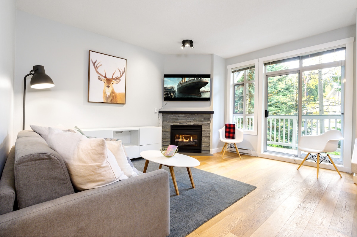 Сучасна скандинавська квартира з 1 спальнею в тихому районі Кріксайд. 3 хвилини пішки до гондоли. Поруч із Веллі-Трейл. Підігрів підлоги, тропічний душ, 50-дюймовий смарт-телевізор, високошвидкісний Wi-Fi, камін, приватна стійка для лиж та БЕЗКОШТОВНЕ паркування. Creekside Village через дорогу для прокату велосипедів, продуктових магазинів, тренажерного залу...Виберіть між вишуканою кухнею (Rimrock, Red Door, Mekong), комфортною їжею (South Side, Creekbread), пабами (Roland's, Dusty's) та кафе (BReD, Rockit). 7 хвилин їзди на автомобілі/ автобусі до Main Whistler Village. Громадський транспорт знаходиться за 2 хвилини від дверей.