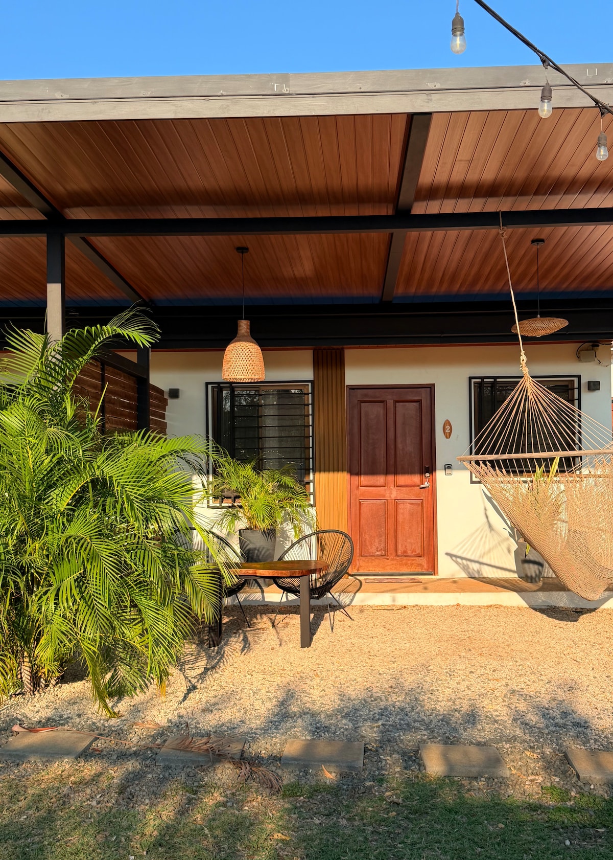 З моменту прибуття в Casa Jocote вас оточує невимушена й природна атмосфера. Зовнішня зона має світлу кам'яну підлогу, яка органічно поєднується з тропічною рослинністю, створюючи охайне та привабливе середовище.☀️Зона для засмагання: біля басейну на вас чекають два зручні дерев'яні шезлонги, які ідеально підходять для того, щоб насолодитися сонцем Гуанакасте або почитати книгу в тіні дерев. Приватний басейн: розташований поруч із зоною відпочинку, ідеально підходить для того, щоб охолодитися в повній приватності.