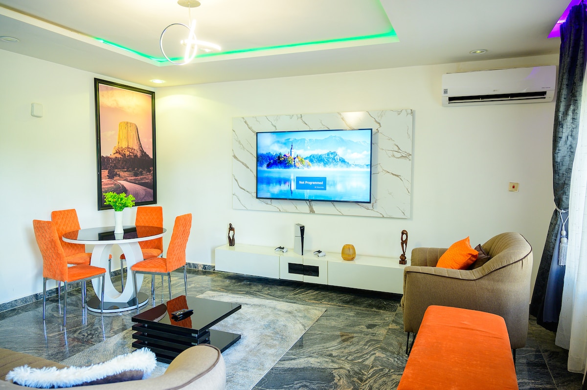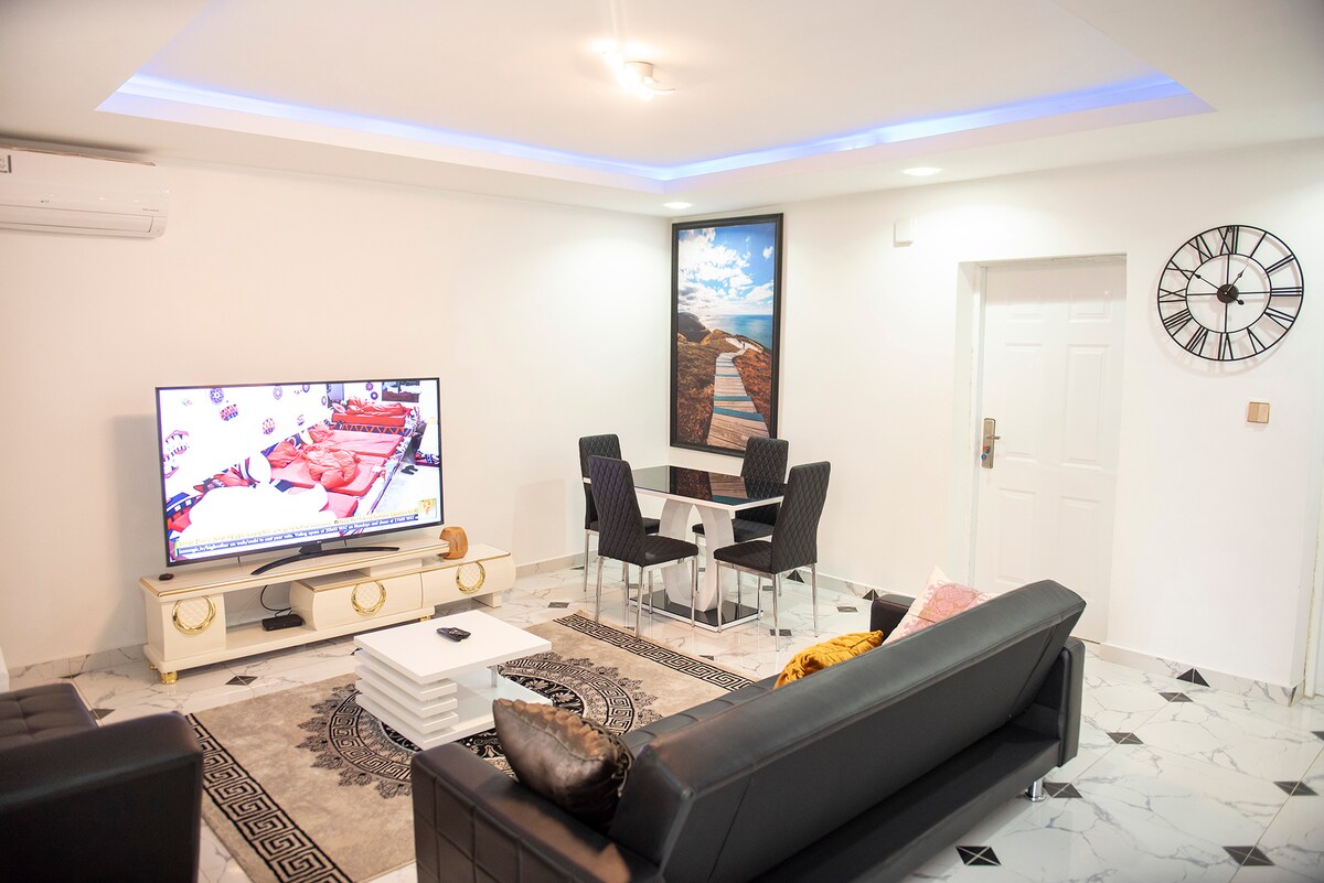 Вишукана та зі смаком мебльована квартира, що підходить для вашого короткого та тривалого перебування, стратегічно розташована в найкращому маєтку в столиці Нігерії - Абуджі, вздовж Аеропорт-роуд, великої артерії, яка з 'єднує маєток із серцем міста та міжнародним аеропортом Ннамді-Азіківе. Це чудове розташування гарантує, що мешканці ніколи не перебувають далеко від основних послуг, ділових районів і розважальних центрів.