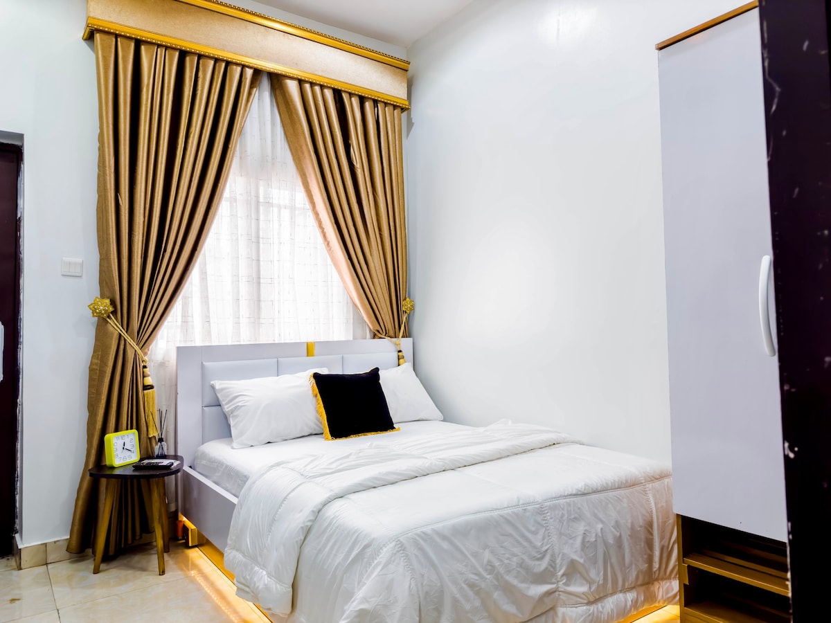 Ця вишукана та розкішна квартира ретельно розташована далеко від міста, але доступна до центру міста. Він розташований в центрі з усіма ексклюзивними зручностями та системою електроживлення, такими як встановлений інвертор і генератор, який ніколи не вимикає охолоджувальний пристрій протягом 12 годин на день. ми пропонуємо послуги пральні за окрему плату, але прасування безкоштовне. в десяти хвилинах ходьби від таких місць, як торговий центр Novare, де ви знайдете кінотеатр Genesis Cinema, Shoprite, спа-салон, перукарню,ресторан тощо.