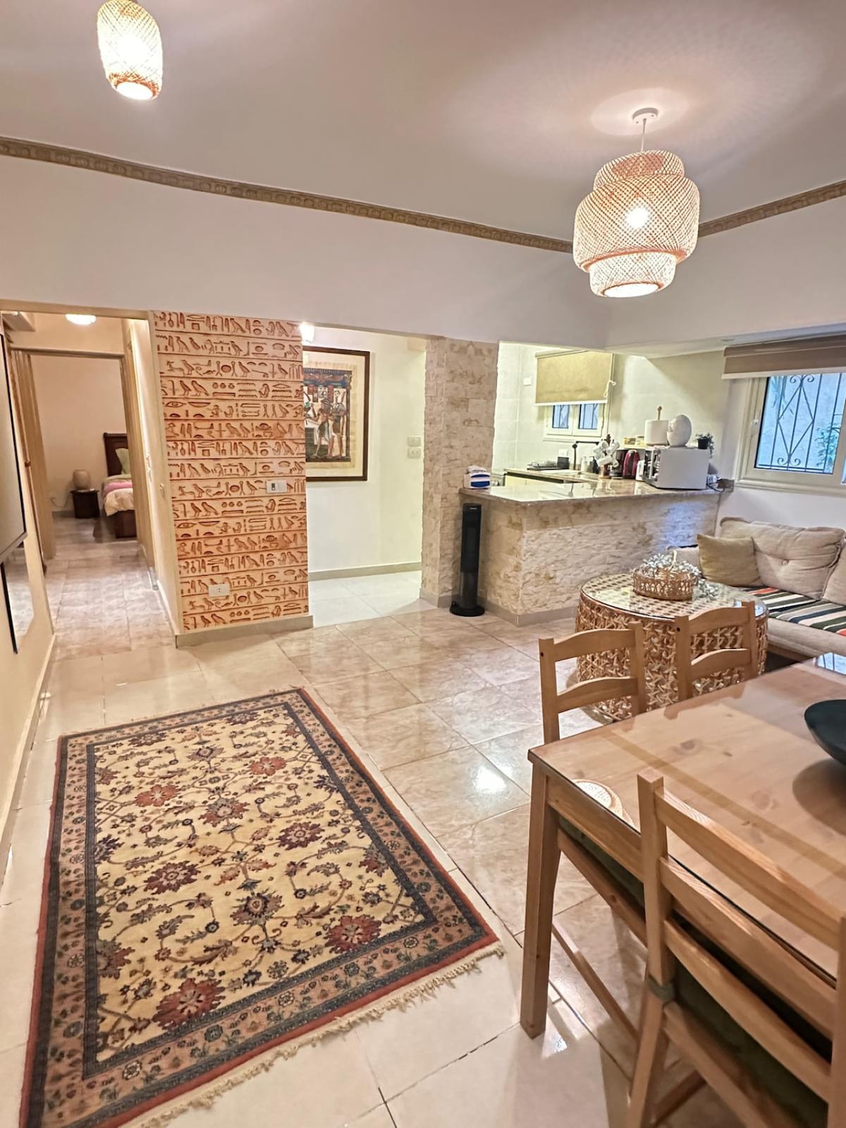 Його нова оновлена сучасна дизайнерська квартира, чиста з повністю обладнаною кухнею, посудомийною машиною, пральнею, великою приймальнею, 2 хвилини пішки до великих пірамід Гізи, 5 хвилин пішки до Новоєгипетського музею. Супермаркет Carrefour прямо під будівлею, багато різних ресторанів навколо будівлі Ми прагнемо забезпечити нашим гостям чудову гостинність, якої вони заслуговують.
