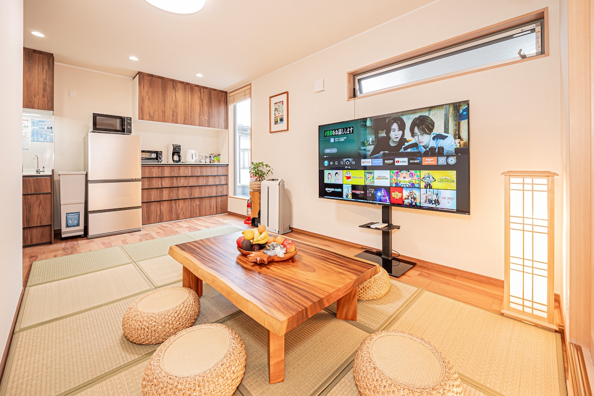 Gather family & friends in this spacious family home, the perfect blend of Japanese modern design & comfort ❤️ Reach Shinjuku Station in just 7 minutes (walk 5 min+train 2 min), unlocking endless possibilities for exploration, let’s step outside to discover unforgettable local scenes & culture! Enjoy a smoother stay: ・get ready fast with 2 showers + 2 toilets ・WiFi, Smart TV, washer + dryer, kitchen to feel at home ・1 minute to supermarket ・quiet alley for restful sleep