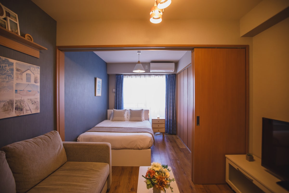 Вам сподобається перебування в цій комфортабельній квартирі. Добре обладнана квартира з 1 спальнею, вітальнею та окремим туалетом і ванною кімнатою. 1 хвилина пішки до станції метро. Близько до центру міста, Намби та Сінсайбасі. 1. Високошвидкісний Інтернет 2. Приватна квартира без спільного користування 3. Мінімум 2 ночі 4. Не курити Це буде ваше помешкання під час подорожі. Чудово проведіть тут час Ми робимо все можливе, щоб забезпечити вам чисте та комфортне помешкання. Підтримуйте належний стан. Отримайте приємні враження від подорожей разом із нами