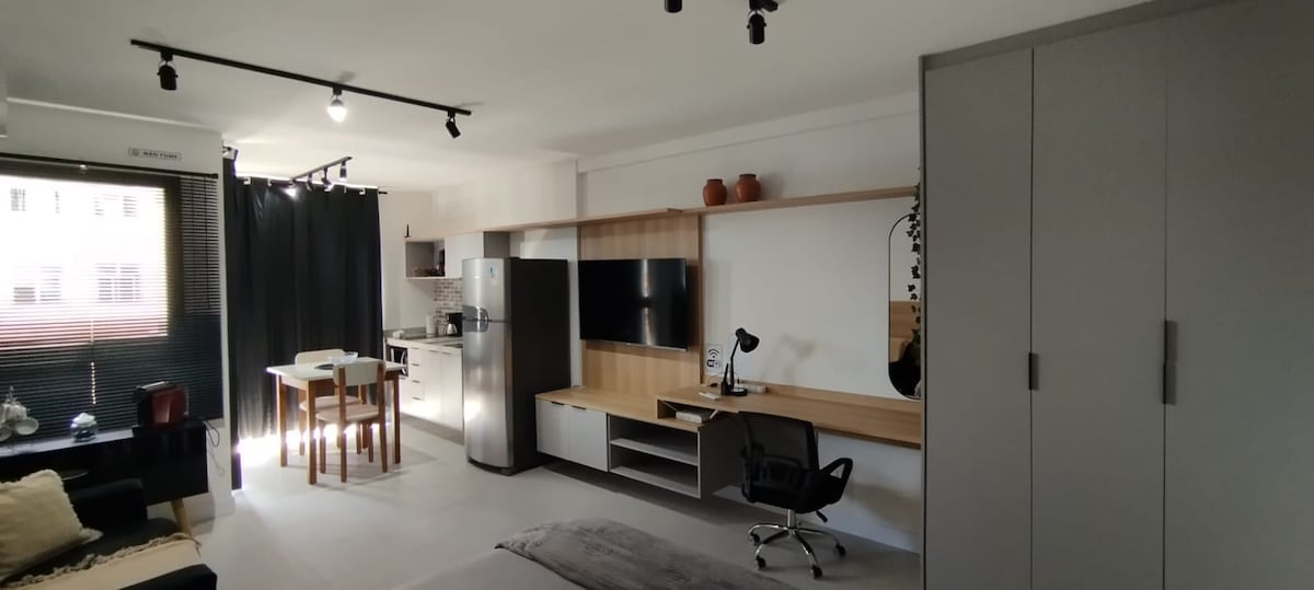 Чарівний і прикрашений лофт, 25 м², розташований в центрі Нітероя. Ваш лофт буде доставлено чистим, продезінфікованим і готовим до використання. Варто перевірити. ПРИЧИНИ ПРИЙОМУ ГОСТЕЙ: - Нещодавно відремонтоване помешкання з сучасним та диференційованим декором. - Привілейоване розташування в центрі, недалеко від південного району, магазини в цілому, банки, аптеки, торгові центри, поромна станція, автобусний термінал до всіх туристичних пунктів міста, парковка 24 години поблизу. - Будівля з цілодобовим консьєржем.
