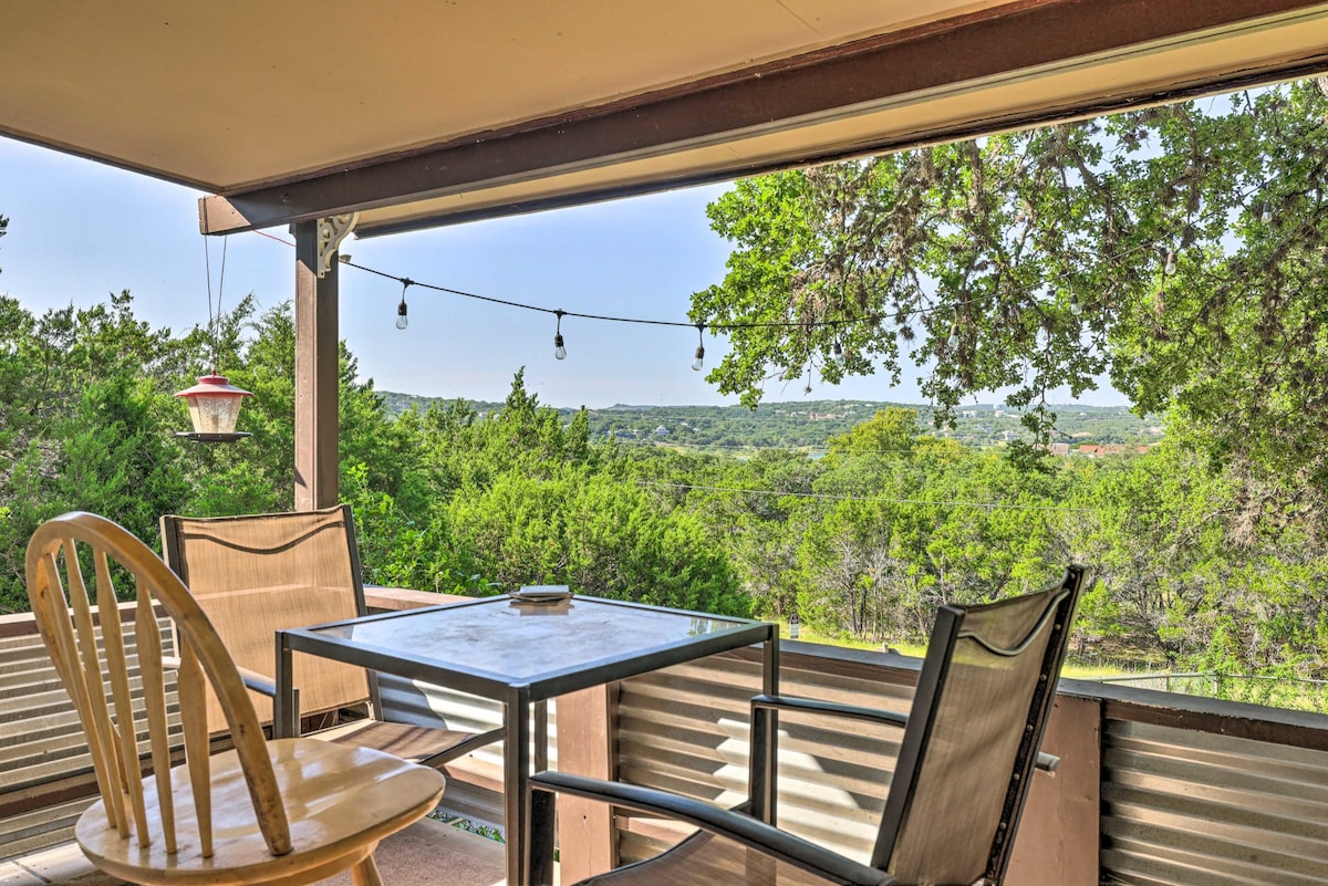 ОДНЕ З НАЙУНІКАЛЬНІШИХ ПОМЕШКАНЬ У ЦЕНТРАЛЬНОМУ ТЕХАСІ! Розташований приватно на скелі з видом на озеро Каньйон, ви будете оточені дикою природою, панорамними краєвидами та власним весняним гротом. Насолоджуйтеся ранковою кавою на веранді, прогуляйтеся до озера по природній стежці, яку використовують олені та лисиці, і спостерігайте за заходом техаського сонця з видом, який охоплює від греблі до вершин Твін-Сістер. Ми розташовані менш ніж в 4 милях від амфітеатру Підкова та Вайтуотер.