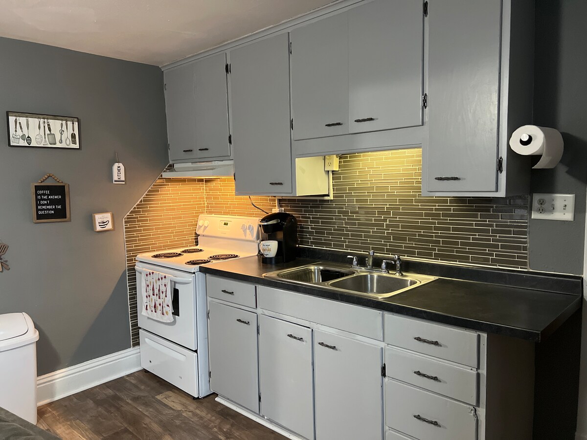 У цьому спокійному помешканні, розташованому в центрі міста, все просто. Ви будете в 4 кварталах від лікарні. Він знаходиться в декількох хвилинах ходьби від більшості місць міста. Ця маленька заміська квартира прикріплена до задньої частини будинку. У вас є спільні зовнішні двері, але для входу в заміський будинок у вас є власне помешкання. Усі комунальні послуги покриті, крім кабельного телебачення. Бездротовий Інтернет, водяне сміття та каналізація, газовий камін. Кондиціонер. Ми знаходимося в 4-6 кварталах від 2 красивих парків і нашого прекрасного озера.