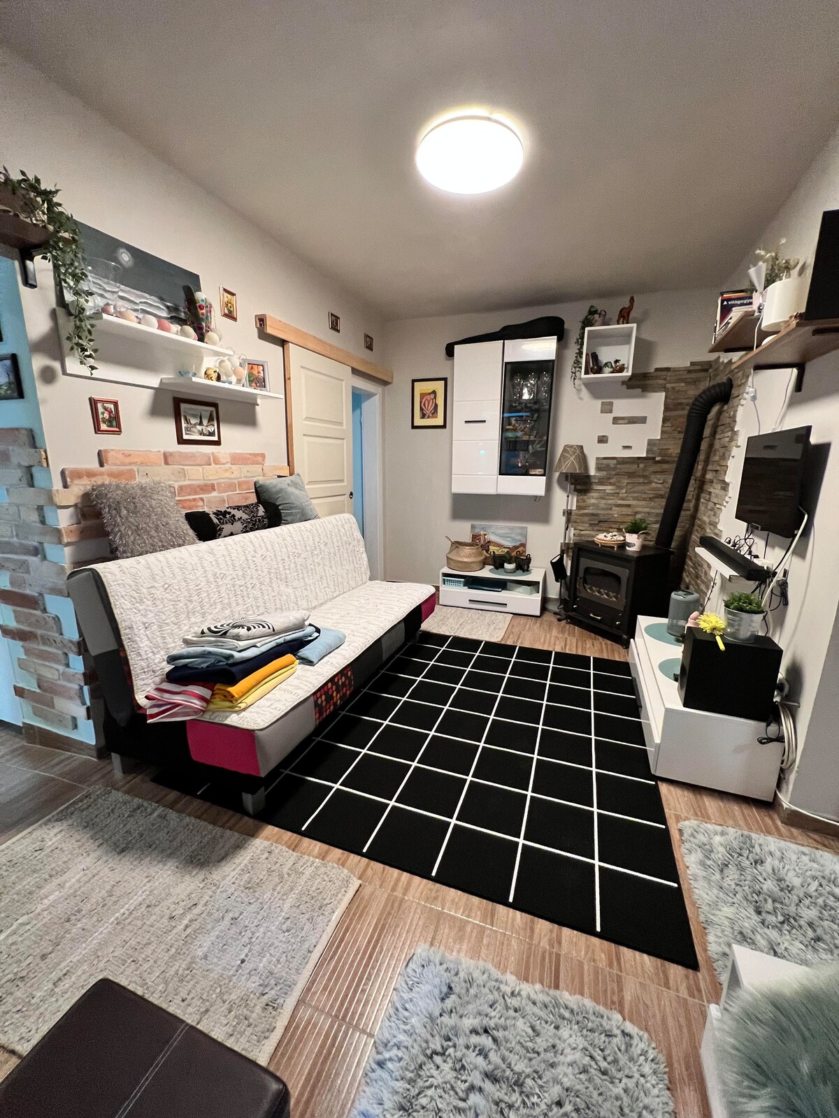Чарівний маленький дерев 'яний котедж з невеликим садом, у п' яти хвилинах ходьби від озера Банк (60 кілометрів від Будапешта). У саду є барбекю, трамбулін та невеликий ігровий дім для дітей. Будинок має одну спальню (дитячукімнату), вітальню з двоспальним ліжком та повністю обладнану кухню (посудомийна машина, мікрохвильова печь, холодильник, духовка, електрична плита, кофемашина nespresso) та ванну кімнату з ванною та туалетом. На терасі розташований стіл зі стільцями.