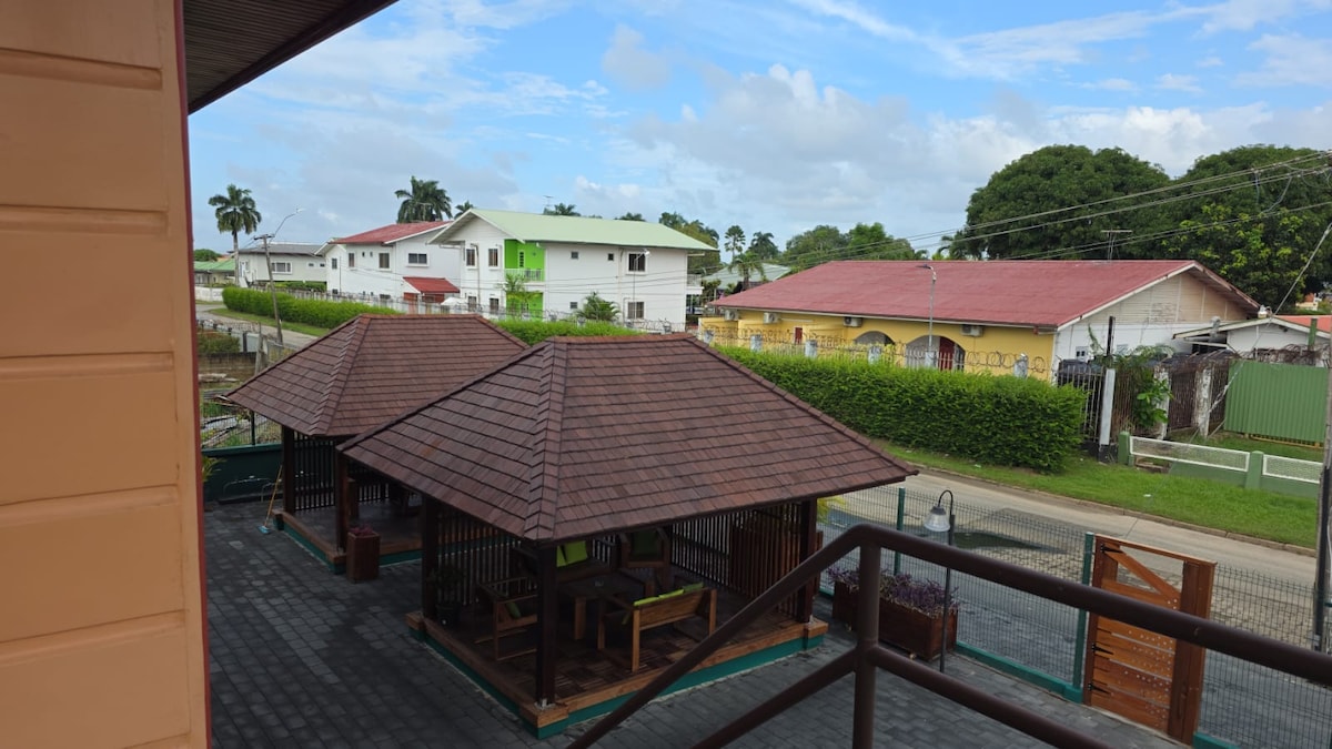 Солара – перлина Парамарібо Сучасна, затишна квартира-студія в центрі міста, в пішій доступності до магазини, ресторани та центр міста. Можна розмістити 2–4 осіб на ліжку розміру queen size, дивані ліжку та кухні. Безпечний, захищений і красиво оформлений. Доступні велосипеди та оренда автомобілів зі знижкою. Ваш ідеальний відпочинок у місті. Маленькі, зручні та створені, щоб почуватися як удома.