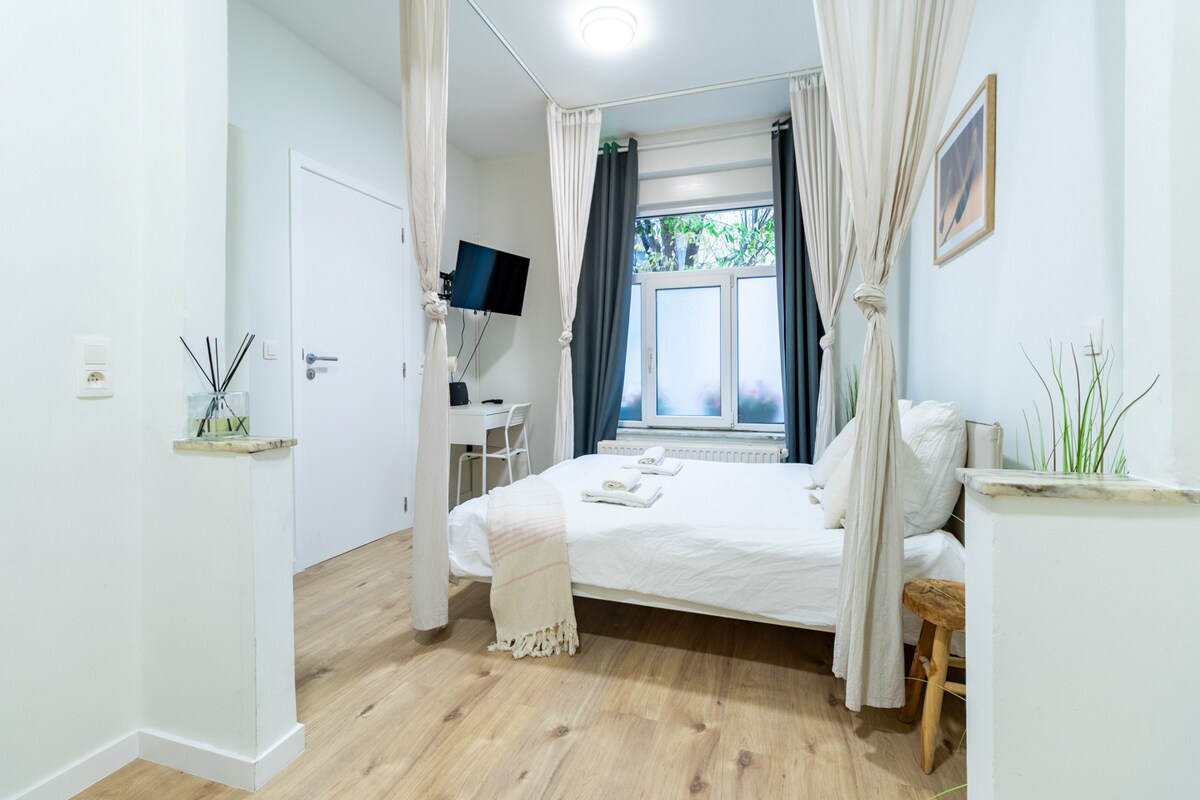 Ласкаво просимо до цієї затишної студії, розташованої в Андерлехті, яка ідеально підходить для легкого дослідження Брюсселя. Завдяки сусідньому громадському транспорту ви можете дістатися до Південного вокзалу менше ніж за 10 хвилин на трамваї, а до центру міста – приблизно за 20 хвилин пішки. Велика площа, культові райони та багато визначних пам’яток столиці легко доступні. Функціональна та гостинна студія – ідеальна база для успішної поїздки до Брюсселя.