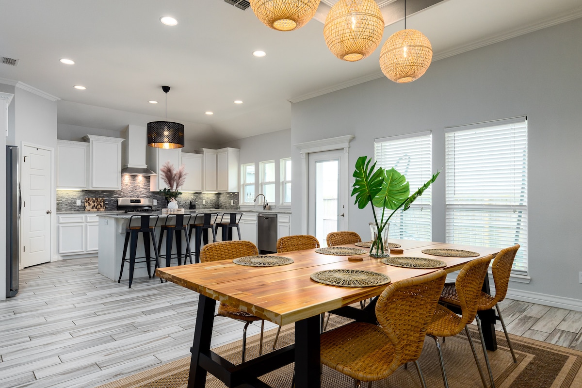 Ласкаво просимо до вашого помешкання далеко від дому в Корпус-Крісті! Цей просторий будинок з 4 спальнями вміщує до 13 гостей і має понад 230 кв. м стильного житлового простору. Це місце розташоване в кількох кроках від заповідника Oso Bay Wetlands і всього в 15 хвилинах від пляжу, тому ідеально підходить для сімей і груп. Насолодіться ігровою кімнатою, простою вітальнею та великою парковкою. Бронюйте зараз і отримайте незабутні спогади про відпочинок або особливу подію! Реєстраційний номер: 142422