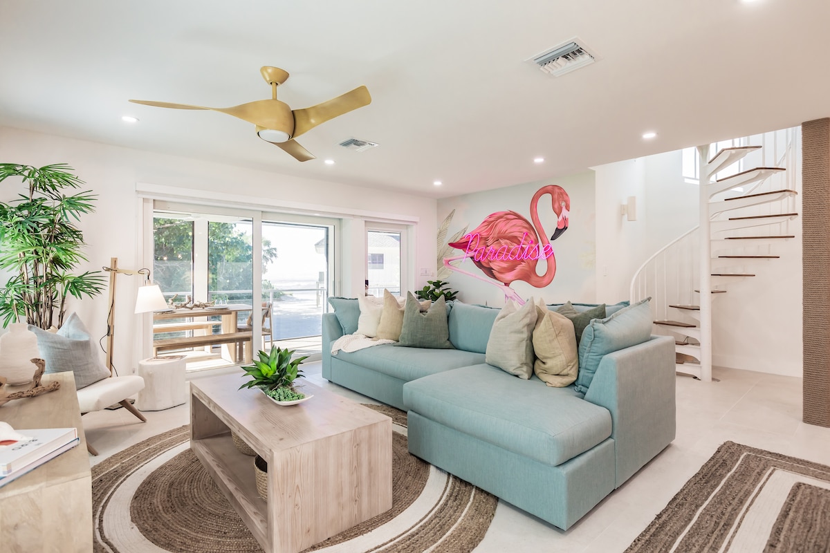 Красивий і привітний - це всього два слова, щоб описати цей чудовий 4-поверховий будинок із приватним басейном із підігрівом і панорамним видом на воду зі оглядового майданчика. У Blue Laguna є 3 спальні та 3 ванні кімнати, де можуть розміститися до 6 осіб. Два екрановані в Ланаї, щоб ви могли сидіти і насолоджуватися острівним бризом і залишати розсувні двері відчиненими для справжнього перебування на острові в холодну пору року. В оренду також входить гольф-кар на 4 осіб.