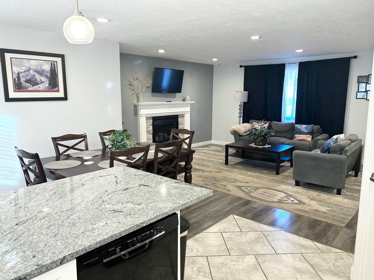 Stay in a modern retreat perfectly located for adventure and relaxation. Just 3 minutes to restaurants and groceries with quick freeway access. Easy drive to skiing in Park City, plus local favorites Brighton Ski Resort and Alta Ski Area. Only 10 minutes to Salt Lake City and 12 minutes to Salt Lake City International Airport. Relax in the backyard with a hot tub, BBQ, and modern firepit. Near Lagoon Amusement Park. Perfect for ski trips, family vacations, or a relaxing getaway.