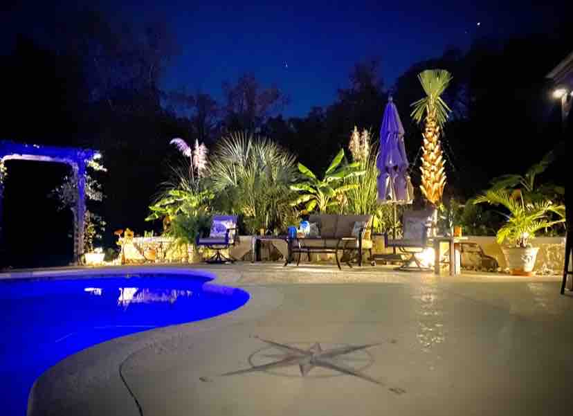 Centrally located between Myrtle Beach, Mount Pleasant and Charleston SC ( closest beach 36 miles by car. A sanctuary with an amazing freshwater (not chlorine or salt but Ionized)swimming pool, between two national parks, The Francis Marion National Forest & Cape Romain Wildlife Refuge. Near waterways, hiking, cycling trails, fishing, low country dining, historical plantations and more. 2 bedrooms & a screened sleeping porch. 4 beds + library, kitchenette & 2 ba